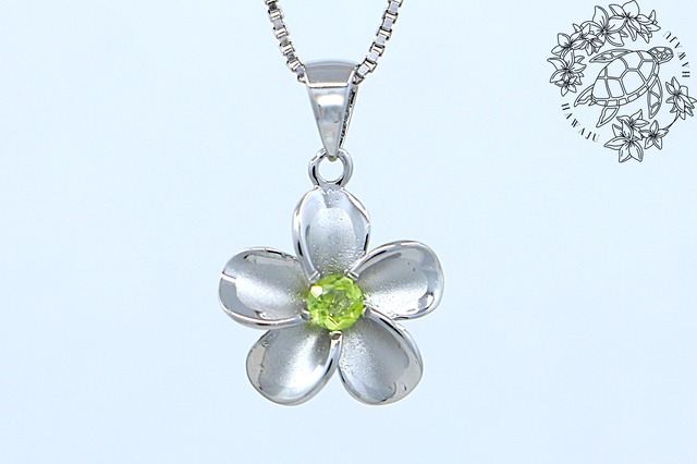 ペンダントトップ プルメリア ペリドット シルバー ハワイアンジュエリー ハワジュ SSP156PD
