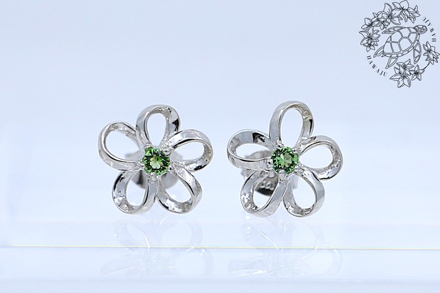 ピアス プルメリア グリーンスワロフスキー スターリングシルバー シルバー ハワイアンジュエリー ハワジュ SSE98GSWP