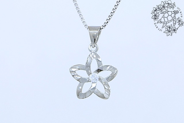 ペンダントトップ プルメリア キュービックジルコニア カットアウト スターリングシルバー シルバー ハワイアンジュエリー SSP177CZ