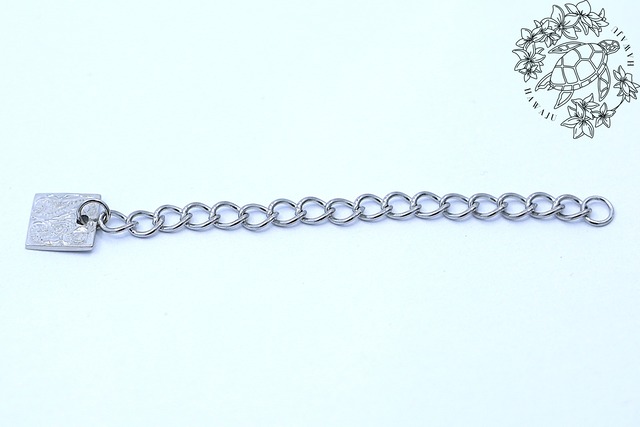 ネックレスやブレスレットの長さを調整できる便利なアジャスターチェーンです。 素材には サージカルステンレス316L を使用しており、金属アレルギーを起こしにくく、汗や水にも強いのが特徴。日常使いはもちろん、長時間の着用でも安心してお使いいただけます。 シンプルなチェーンデザインに、ハワイアンジュエリーらしい模様が刻まれたスクエアプレートがアクセントに。控えめながらも上品に揺れ、後ろ姿までおしゃれに演出してくれます。 【シルバーカラー】 シルバーカラーは、洗練された上品さと、どんなスタイルにもなじむ万能さが魅力。 華やかさを抑えた落ち着いた輝きが、さりげなく存在感を放ちます。 ■ カラー / サイズ / バリエーション カラー:シルバー サイズ:チェーン長さ約5cm(プレート含め約6cm) 幅約3.5mm ■ 素材 素材:サージカルステンレス ■ お手入れ / 取り扱い注意事項 ご使用後は柔らかい布で優しく拭いていただくことで、長く美しさを保てます。 湿気の少ない場所で保管してください。 ■ 発送・注文に関する情報 ご注文から通常2~3営業日以内に発送いたします。 商品に不備がございましたら、お手数ですが早めにご連絡ください。 ■ その他のご案内 ギフトラッピングご希望の際は、ご注文時にお気軽にお申し付けください。 お気に入りのネックレスやブレスレットにプラスするだけで、より快適に、そして華やかにお楽しみいただけます。