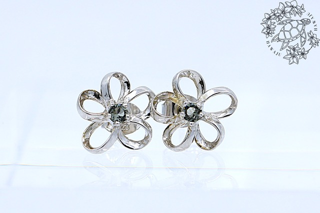 ピアス プルメリア ブラックスワロフスキー スターリングシルバー シルバー ハワイアンジュエリー ハワジュ SSE98BKSWP