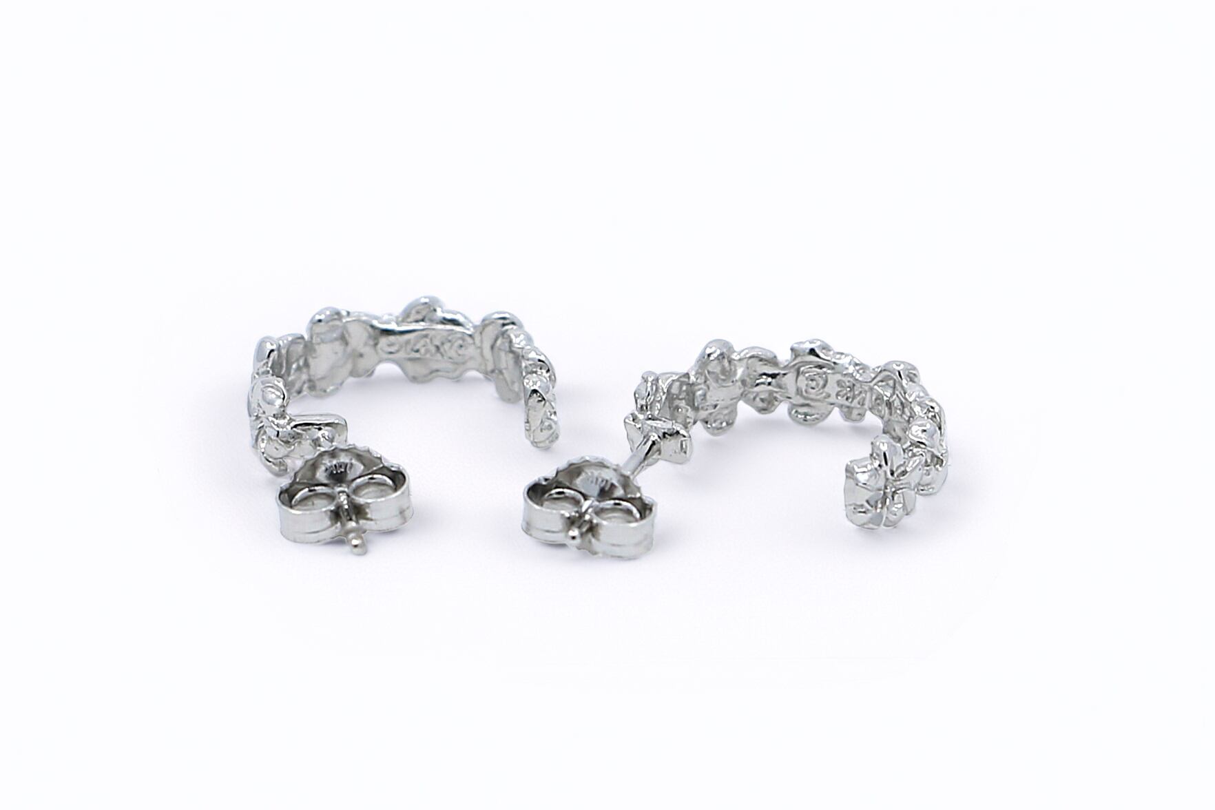 この14Kホワイトゴールドピアスは、ハワイの自然と文化を象徴するプルメリアの花が連なるエレガントで繊細なデザインが特徴のハワイアンジュエリーです。ホワイトゴールドのクリーンで洗練された輝きと、プルメリアの花が作り出す優美なデザインが耳元を華やかに彩ります。ポストタイプのピアスは、シンプルながらも存在感があり、日常のコーディネートにもぴったりです。