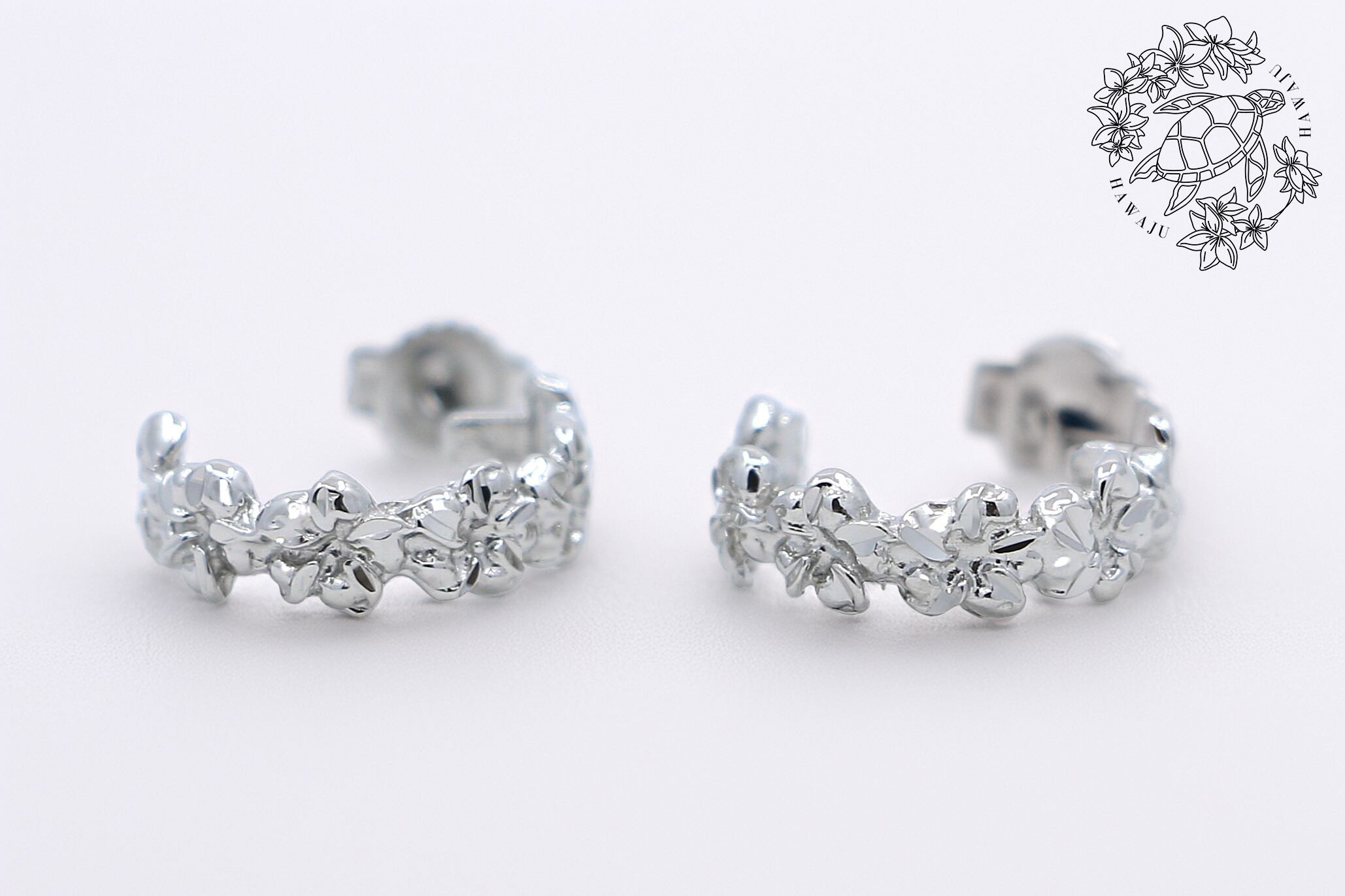 14K ピアス プルメリア ホワイトゴールド ハワイアンジュエリー ハワジュ WGE5P