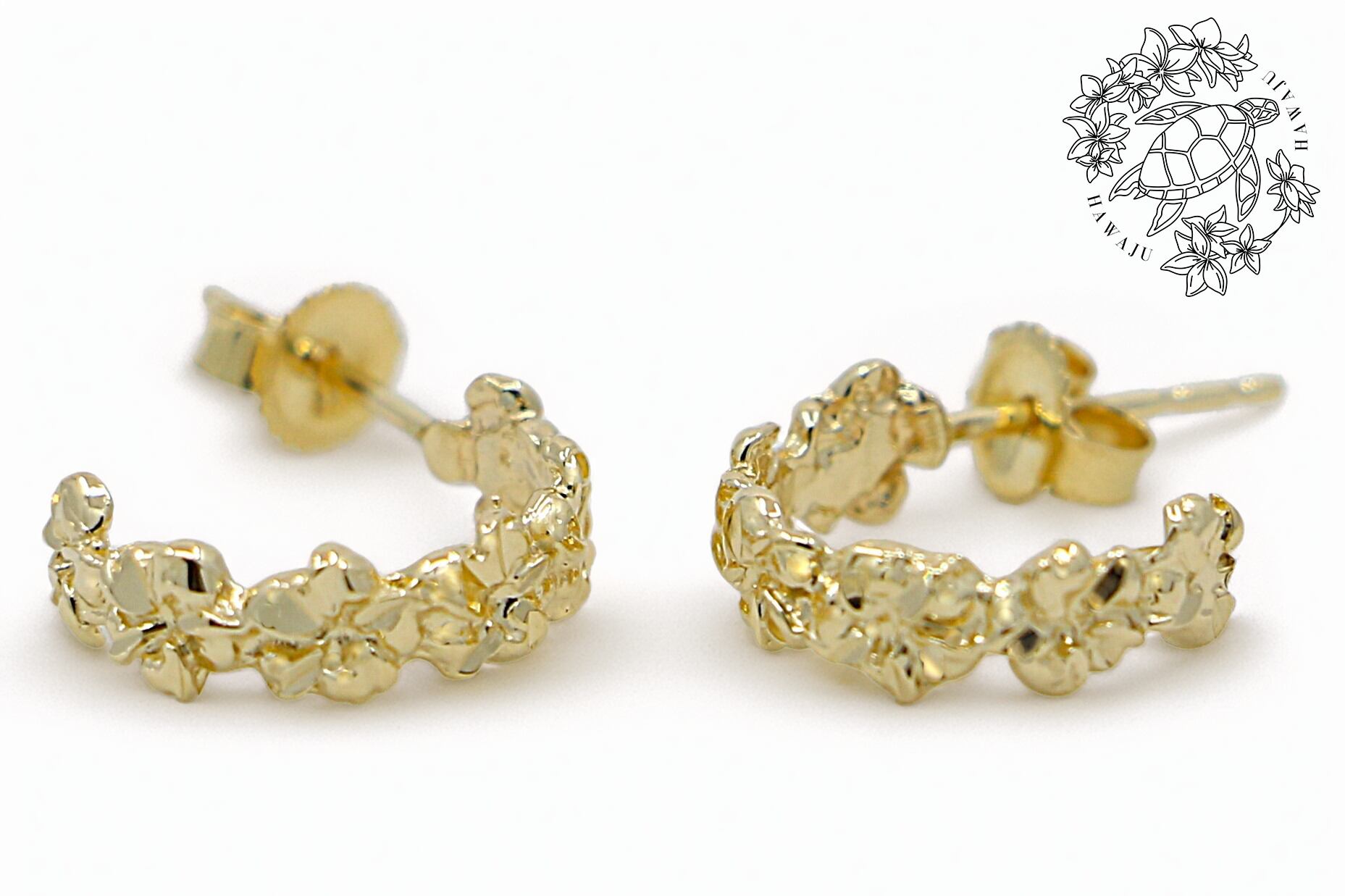 この14Kイエローゴールドピアスは、ハワイアンジュエリーの象徴的なデザインを取り入れた美しいアイテムです。プルメリアの花が連なるデザインは、ハワイの自然の美しさと精神を表現しています。プルメリアは愛、平和、そして癒しの象徴として知られ、身につけることで心を落ち着け、ポジティブなエネルギーを感じることができます。