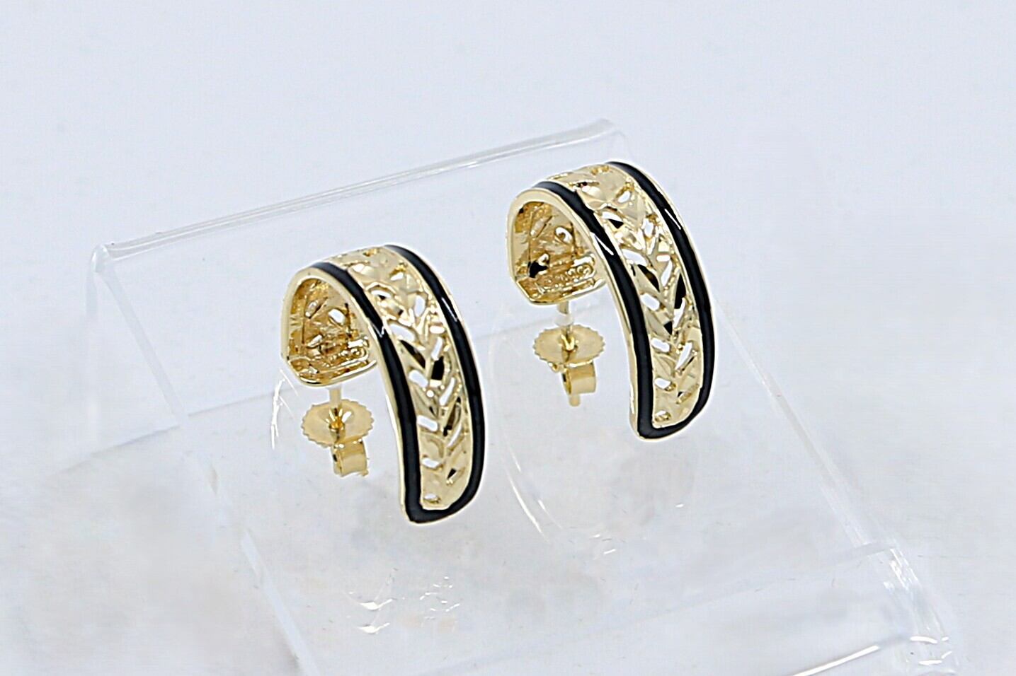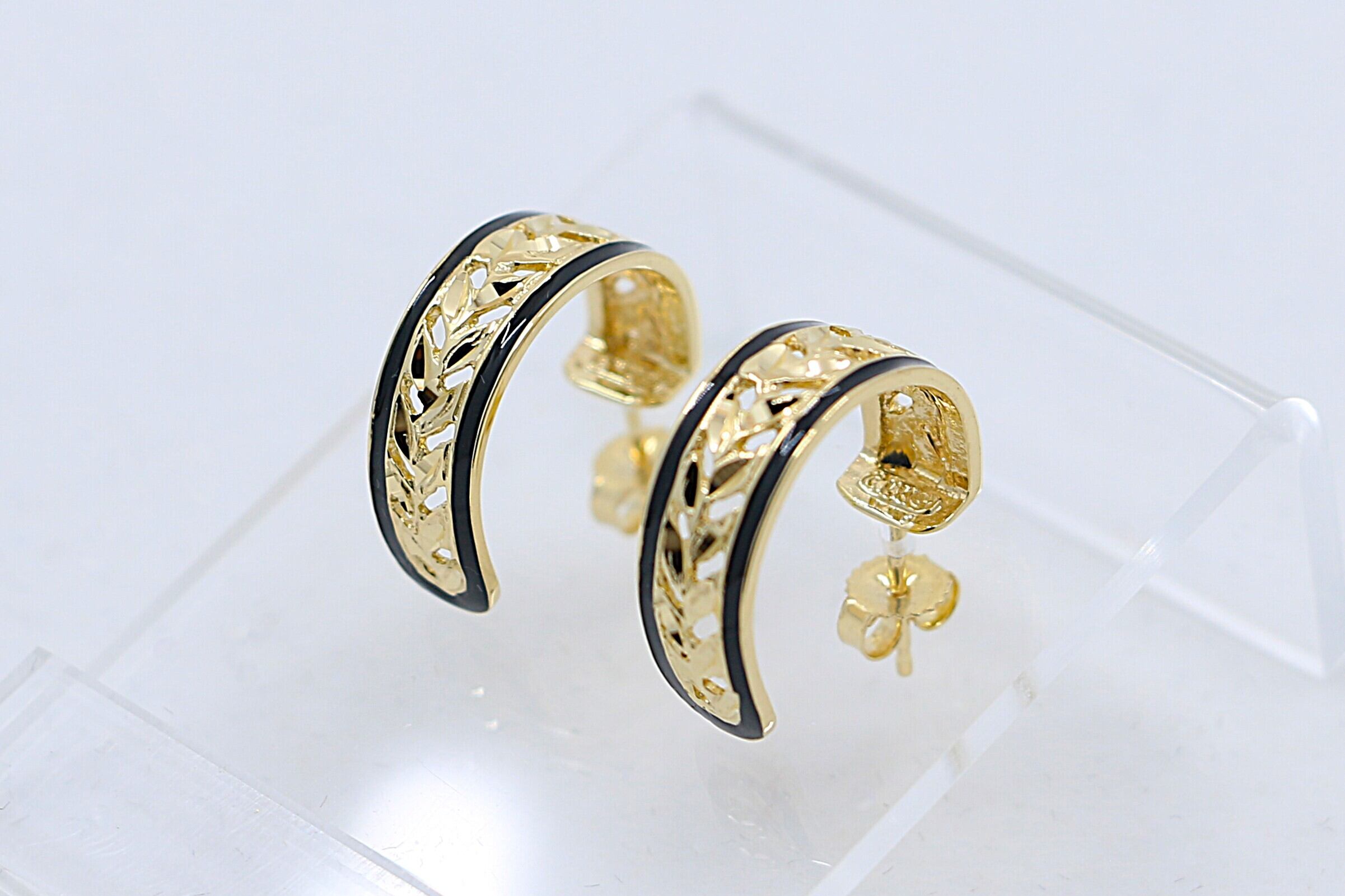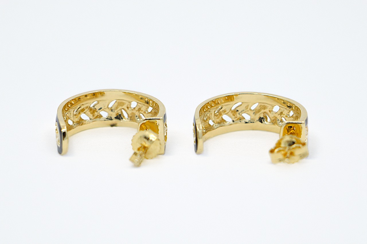この14Kイエローゴールドのピアスは、熟練の職人が透かし彫りの技法を用いて、丹念にマイレの葉を彫り込んで仕上げた格調の高いデザインが特徴で、イエローゴールドの上品な輝きと洗練された美しさを兼ね備えた一品です。重量感がありながら、透かし彫りの技法により軽やかな着け心地になっています。シンプルなポストタイプのピアスは、カジュアルな日常使いから、オフィスやフォーマルな場面まで、幅広いシーンで活躍します。