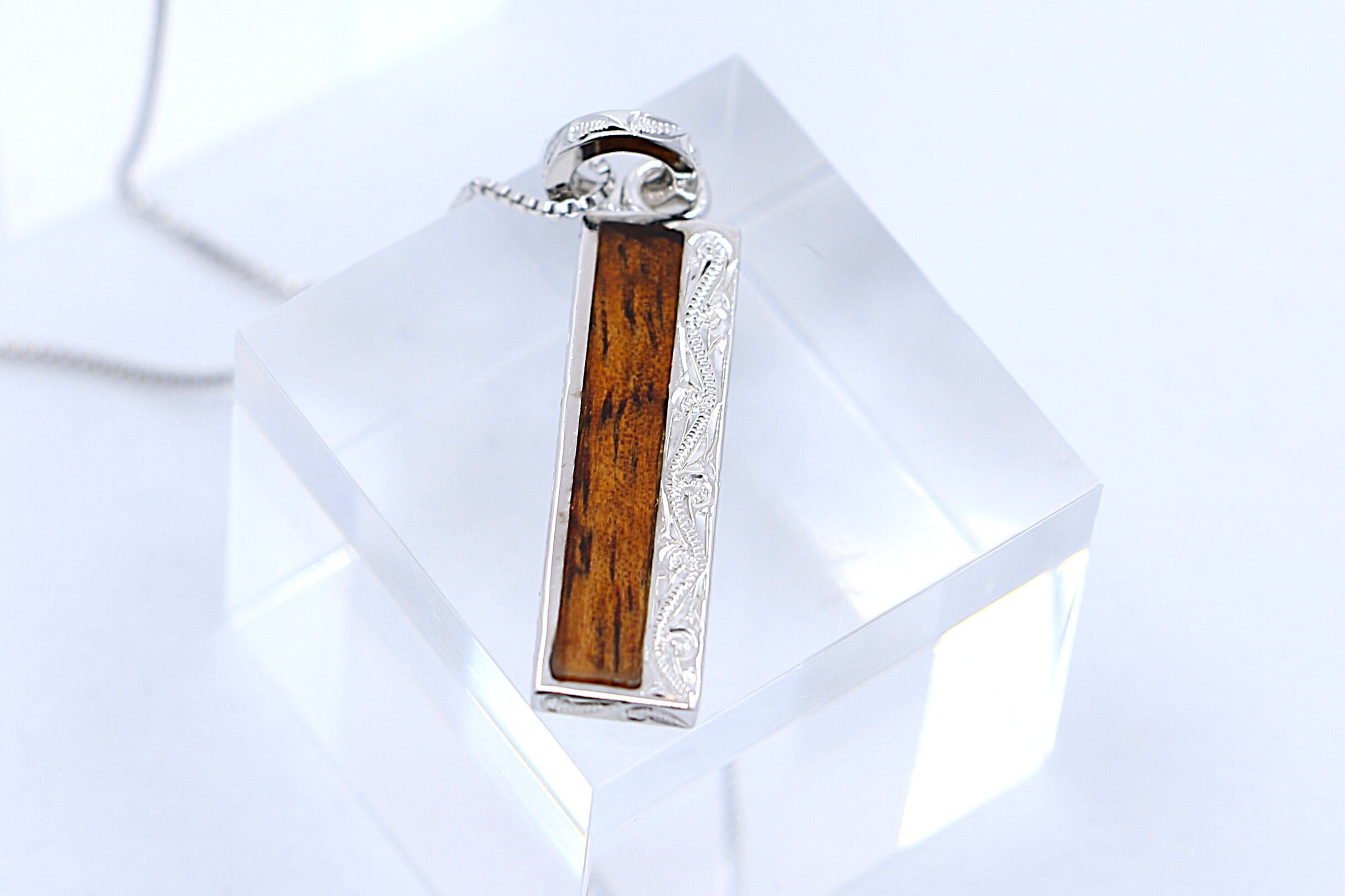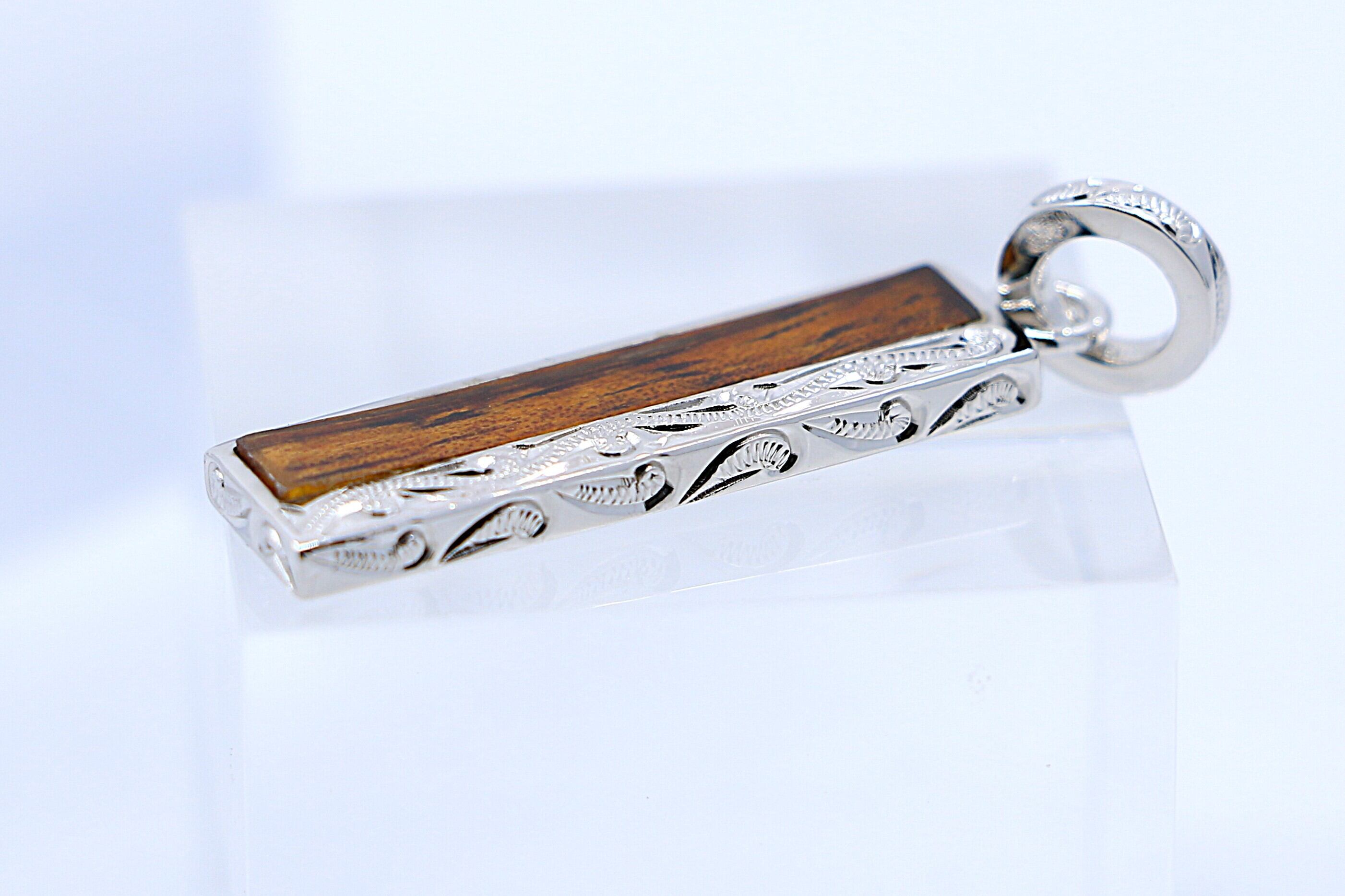 このペンダントトップは、コアウッドとシルバーを組み合わせた美しいデザインで、ハワイアンジュエリーの魅力を引き立てるアイテムです。コアウッドとシルバーで組み合わされたバー型の形状は、シンプルながらも自然素材と金属が調和した洗練されたデザインなので、リラックスしたスタイルにもエレガントなスタイルにもぴったりです。