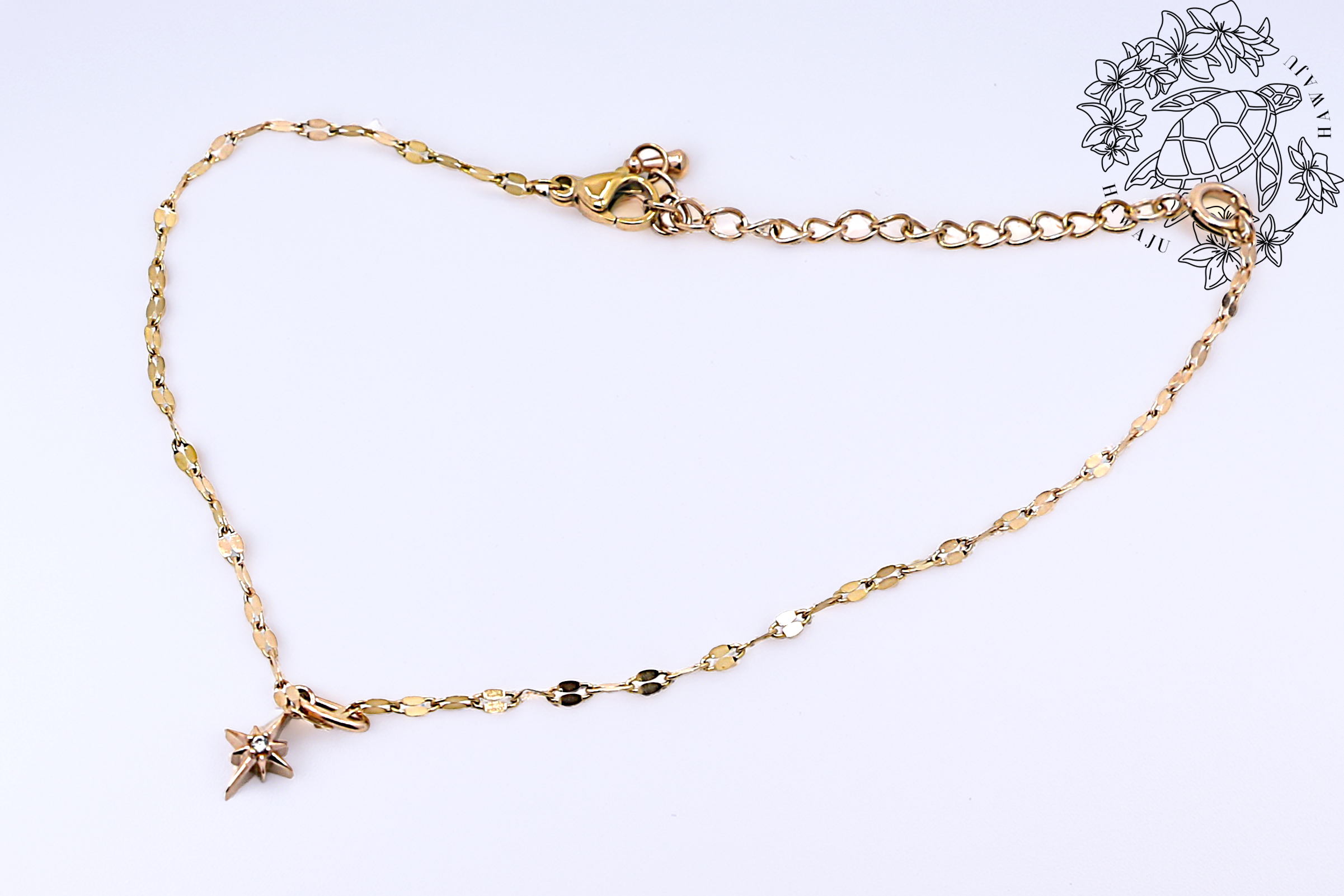 足元に繊細な輝きを添える、エレガントなチェーンタイプのアンクレットです。