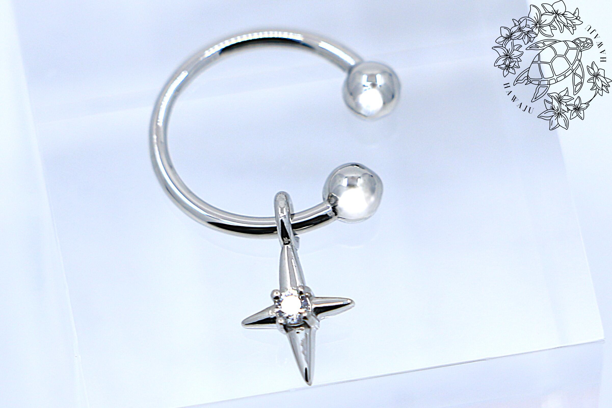 シルバーの輝きをまとった本体に、クロスのチャームと繊細なハワイアン模様をあしらい、南国の風を感じるデザインに仕上がってます。クロスにはキュービックジルコニアを使用し、耳元にさりげない個性と華やかさをプラスします。