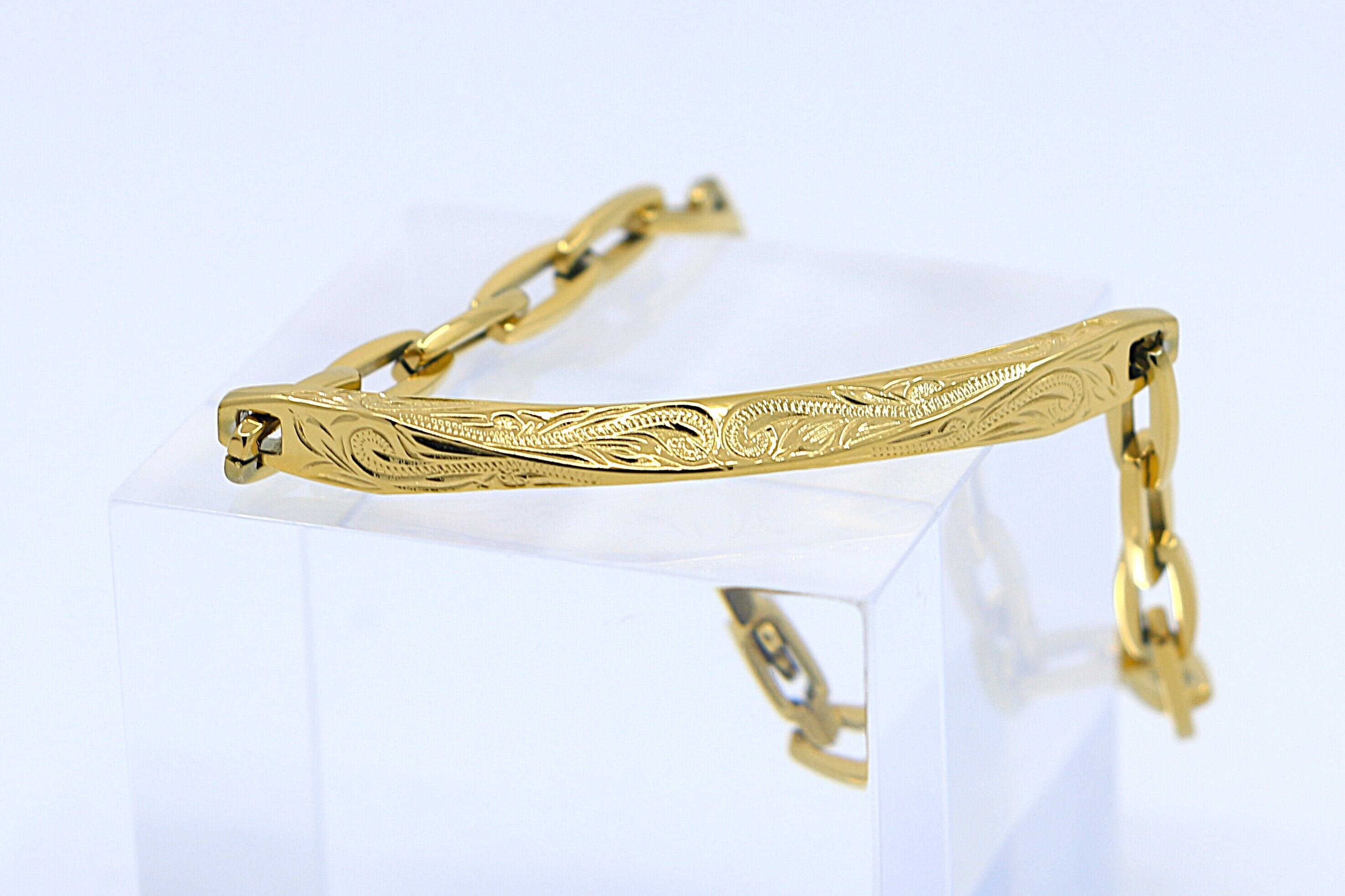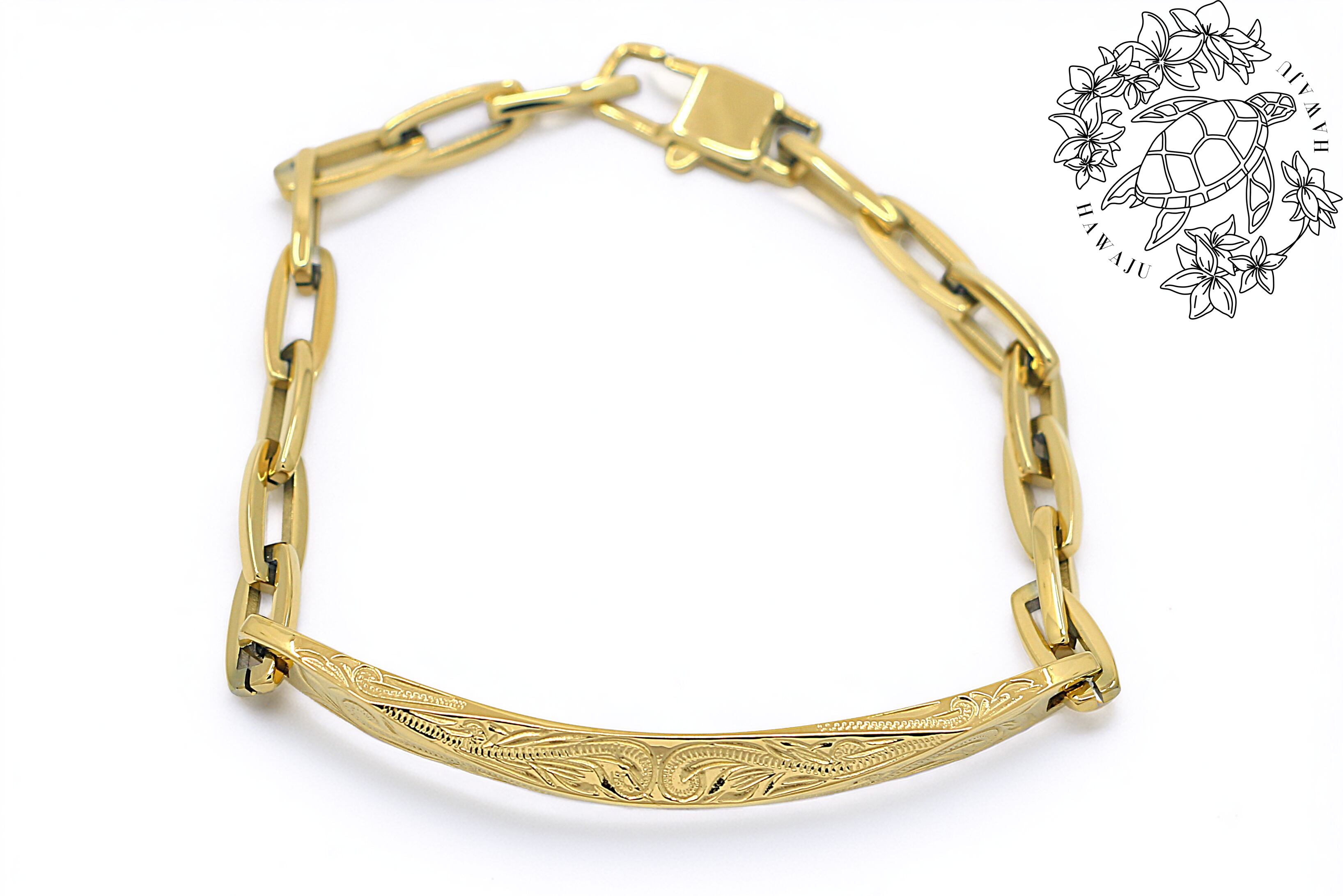 鮮やかで上品なイエローゴールドカラーが魅力の、ハワイアンスタイルのブレスレットです。