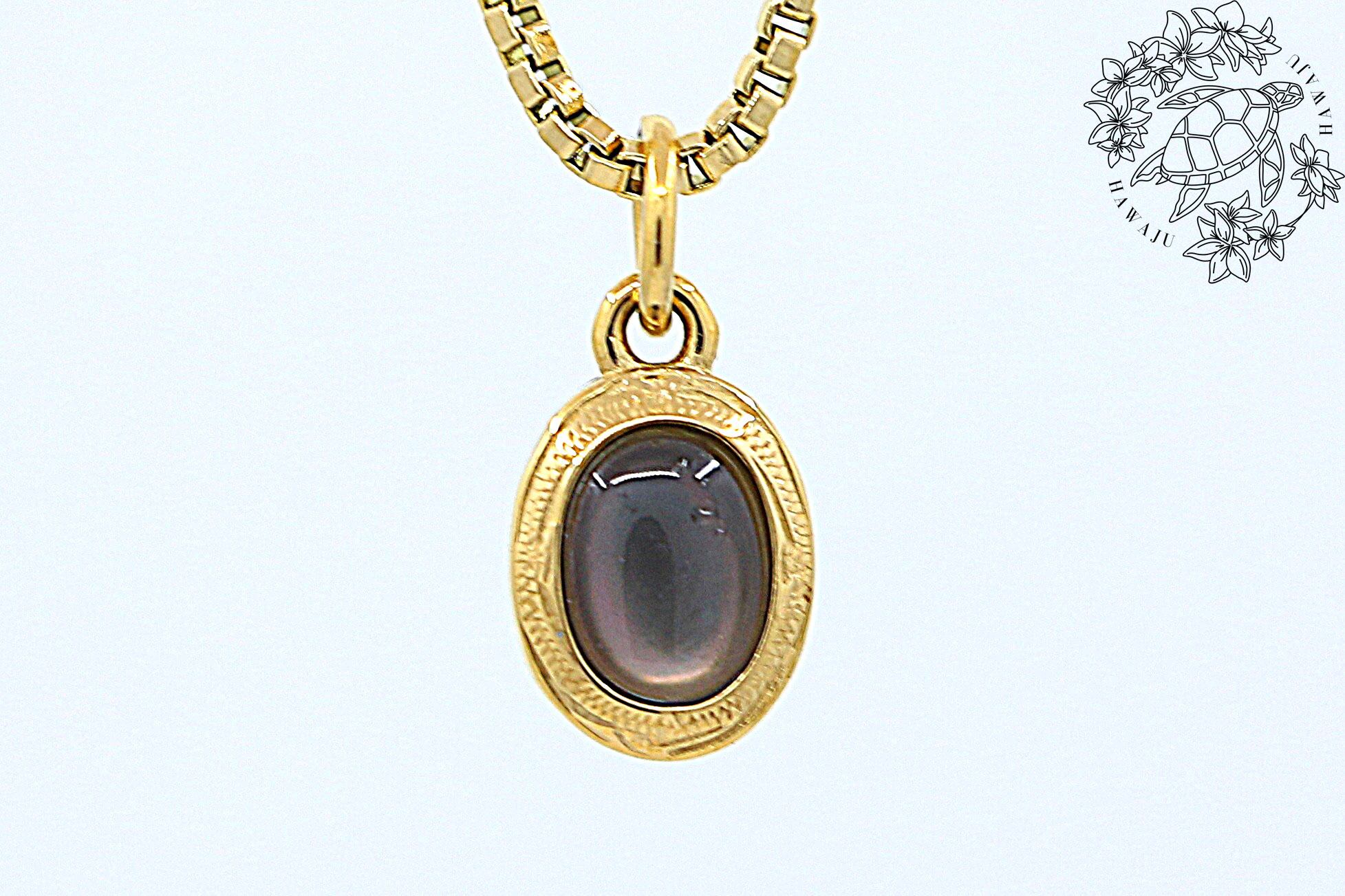 このペンダントトップは、ハワイアンジュエリー特有の繊細な模様が施されたサージカルステンレスのフレームに、シェルが美しく収められています。シェルは自然の海を感じさせる穏やかな光沢が魅力で、身につける人に癒しと安らぎを与えてくれるといわれています。