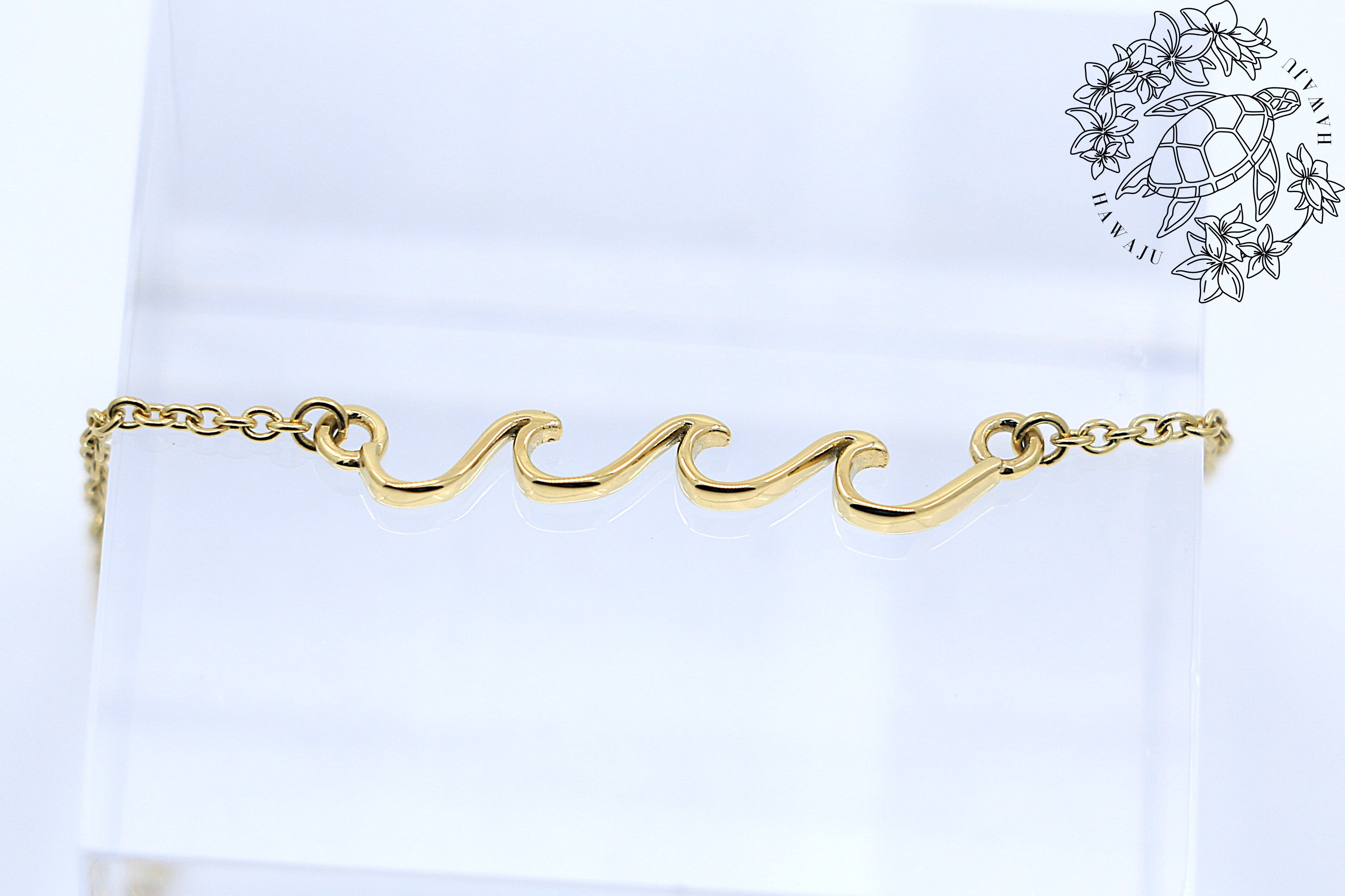 ウェーブモチーフは、変化と永遠の流れを象徴し、人生の波に乗りながら前向きに進む力や、自然との調和、そして海のような癒しと守りを意味します。このモチーフは、ハワイの人々にとって神聖な海を敬い、自然と共に生きる心を表現しています。身につける人にポジティブな流れをもたらす、お守りのような存在です。