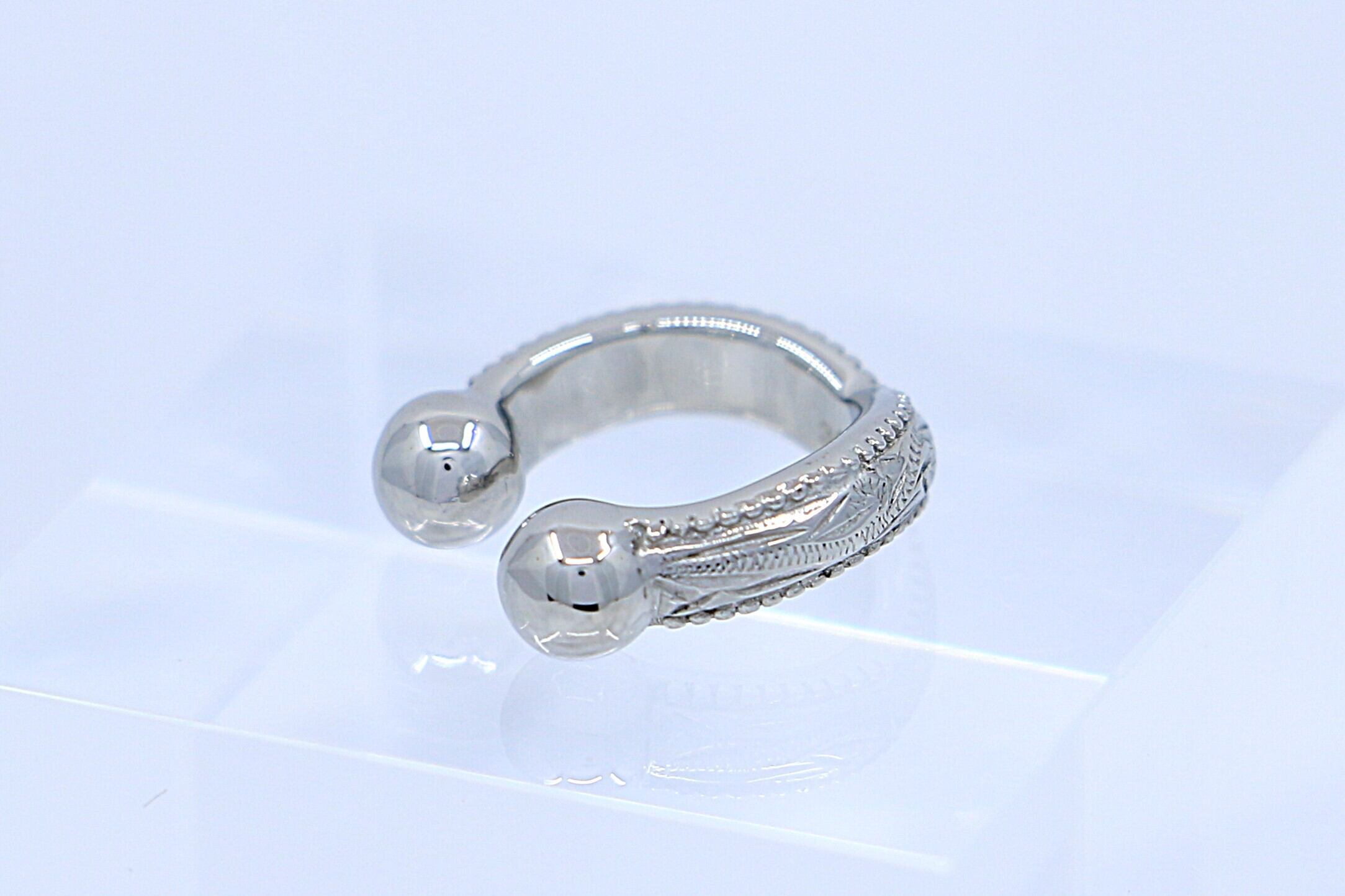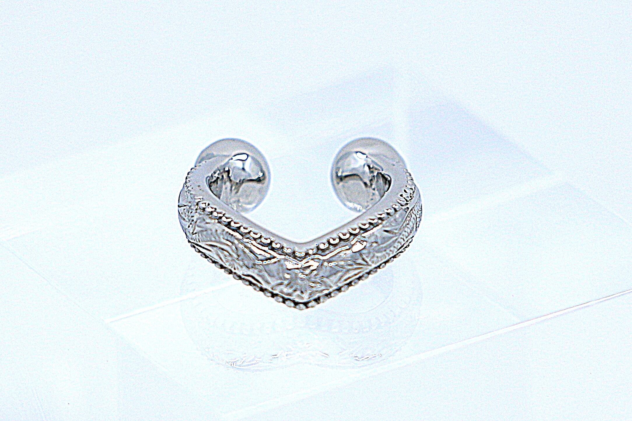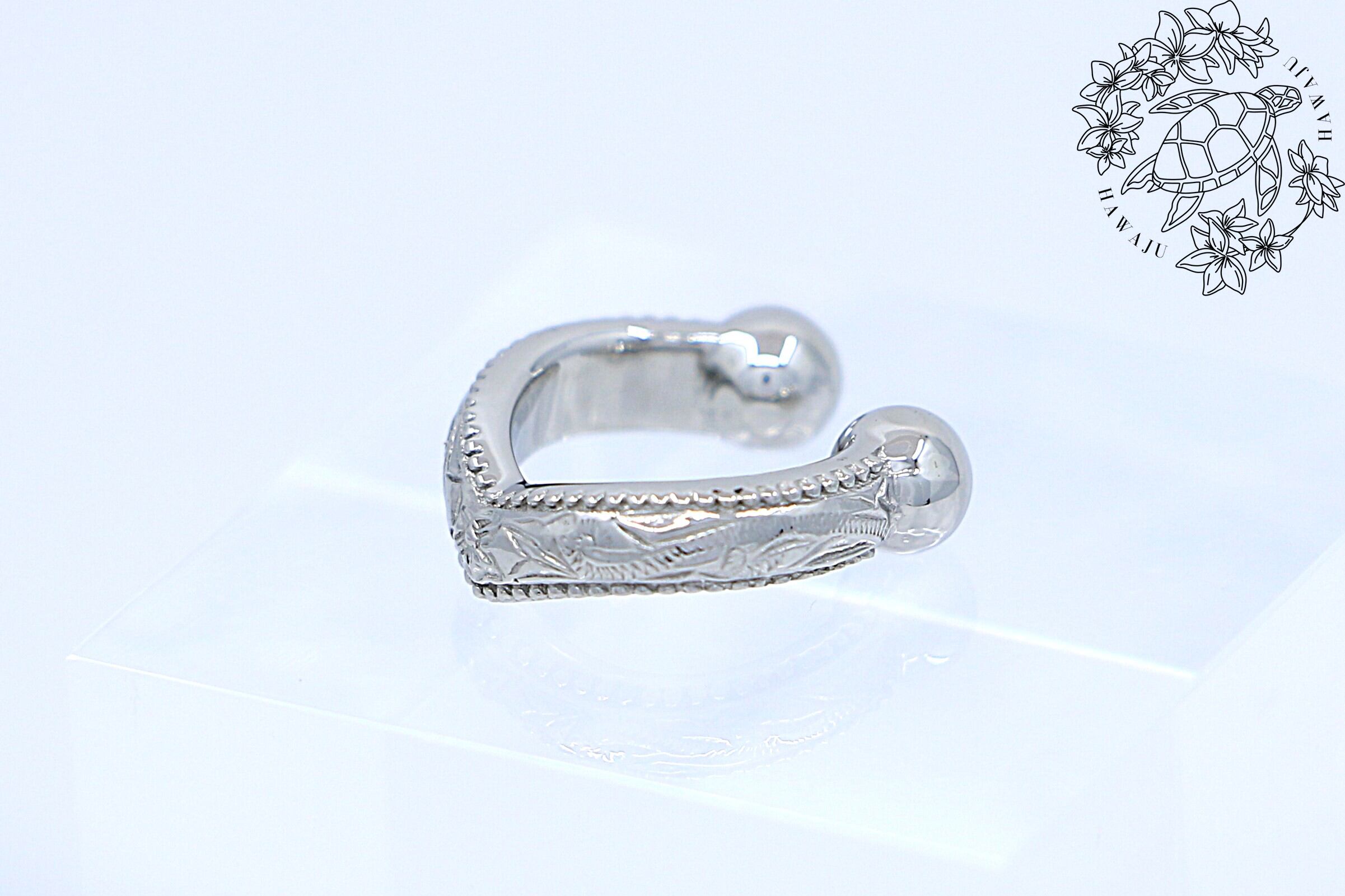 ハワイアンジュエリーならではの伝統模様を繊細な彫刻で表現した、ビーズエッジの縁取りが特徴的な美しいヘリテイジデザインのイヤーカフ(片耳用)です。素材には高品質なサージカルステンレスを使用しており、金属アレルギーが気になる方にも安心してお使いいただけます。