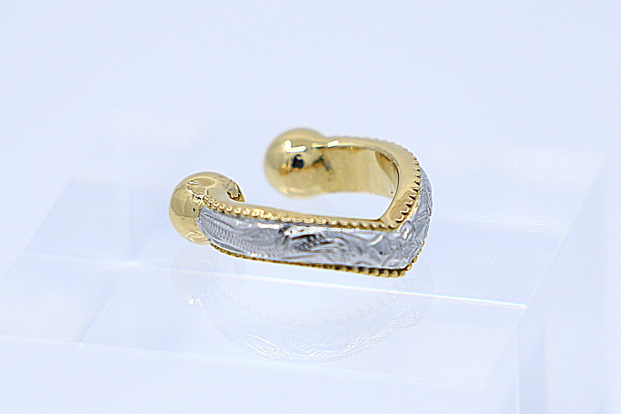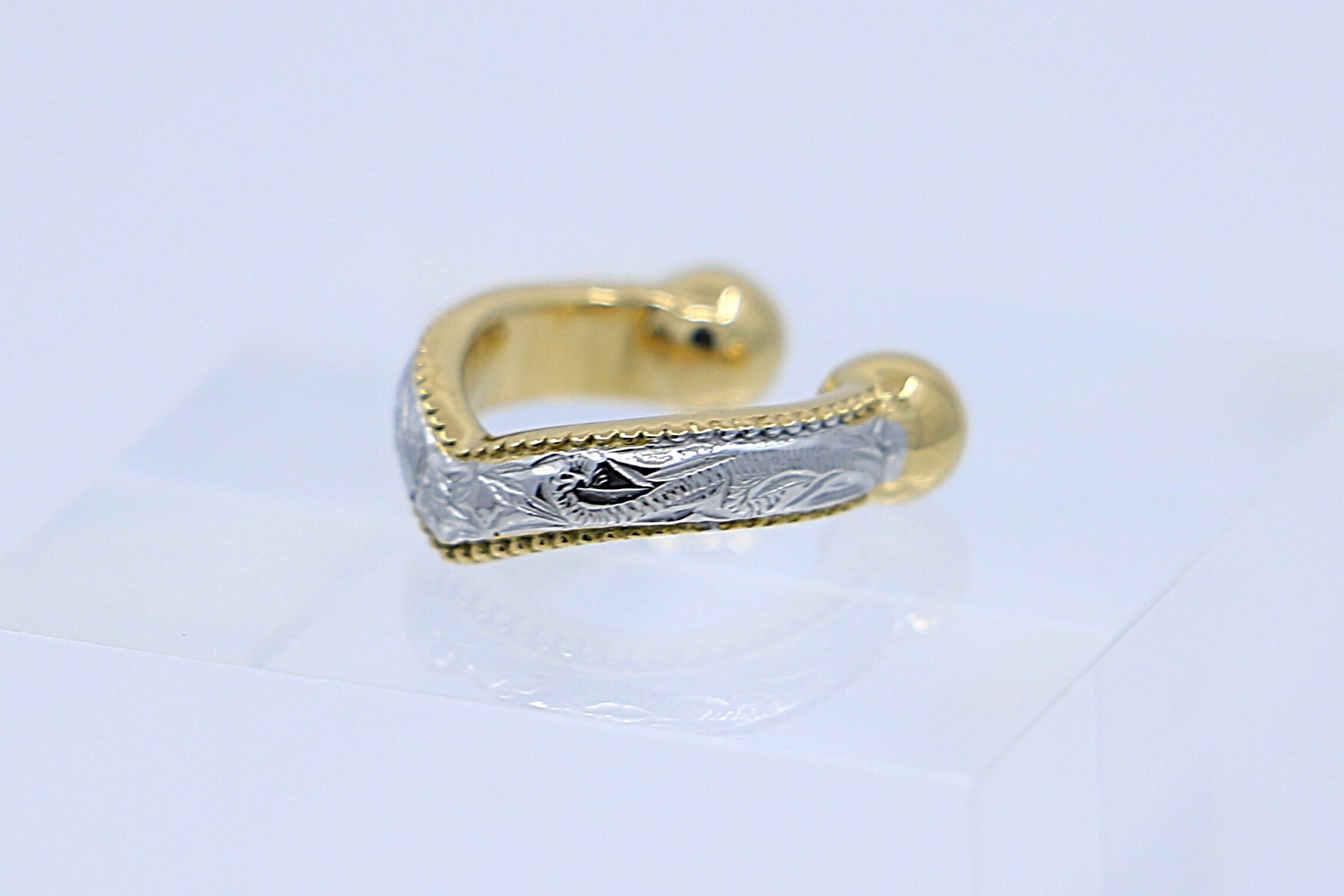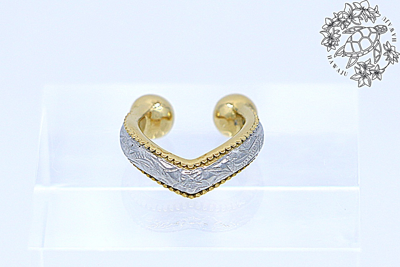 ハワイアンジュエリーならではの伝統模様を繊細な彫刻で表現した、ビーズエッジの縁取りが特徴的な美しいヘリテイジデザインのイヤーカフ(片耳用)です。素材には高品質なサージカルステンレスを使用しており、金属アレルギーが気になる方にも安心してお使いいただけます。