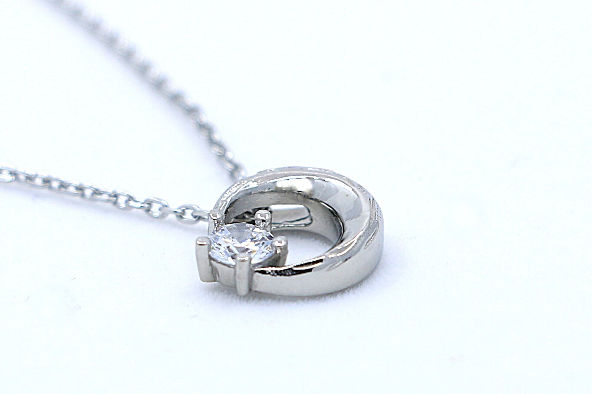 三日月にキュービックジルコニアをあしらい、上品な煌めきが首元を彩ります。