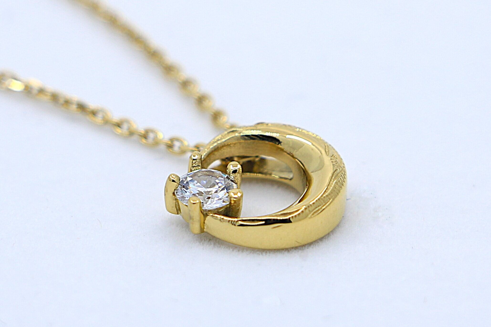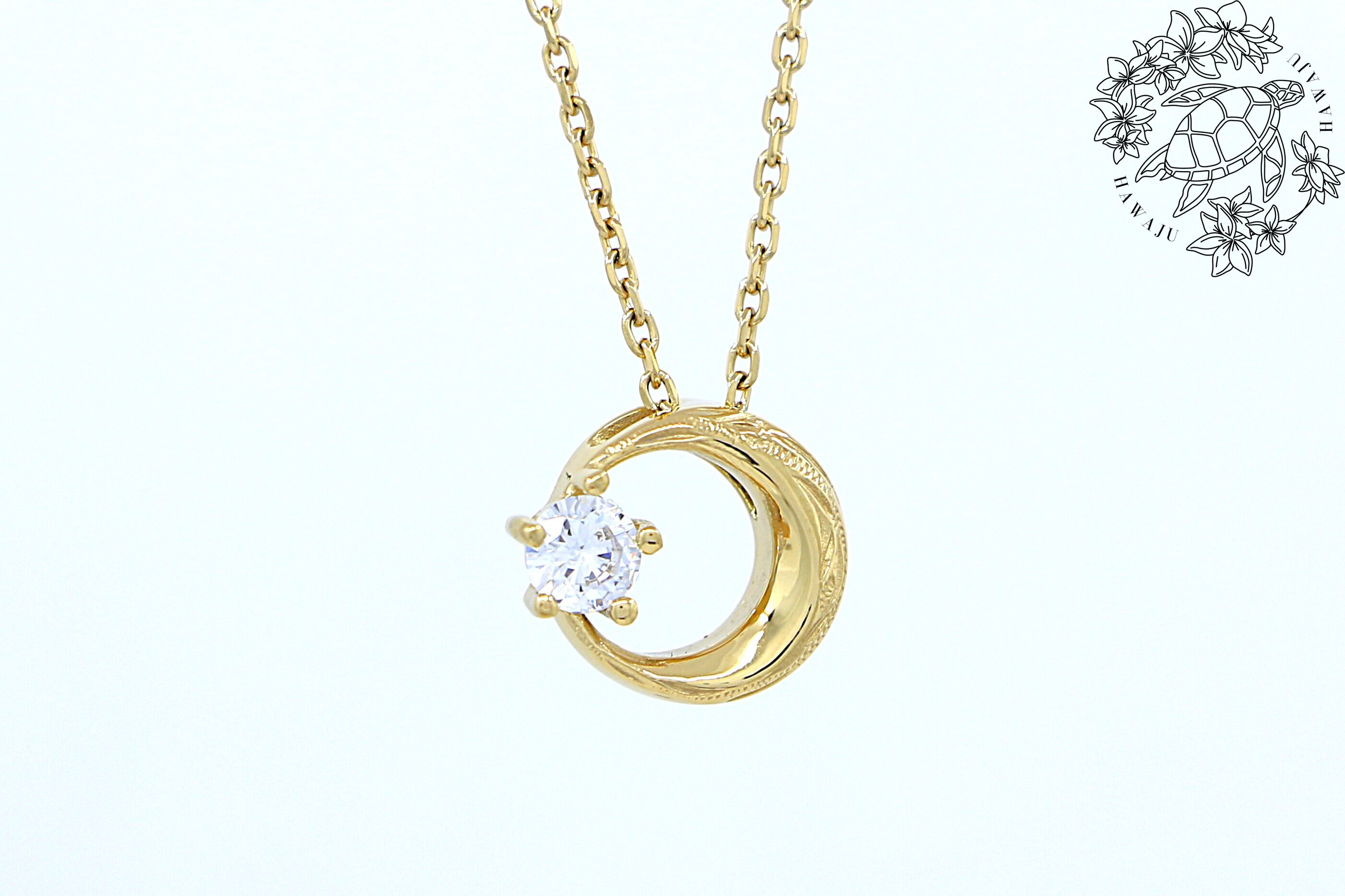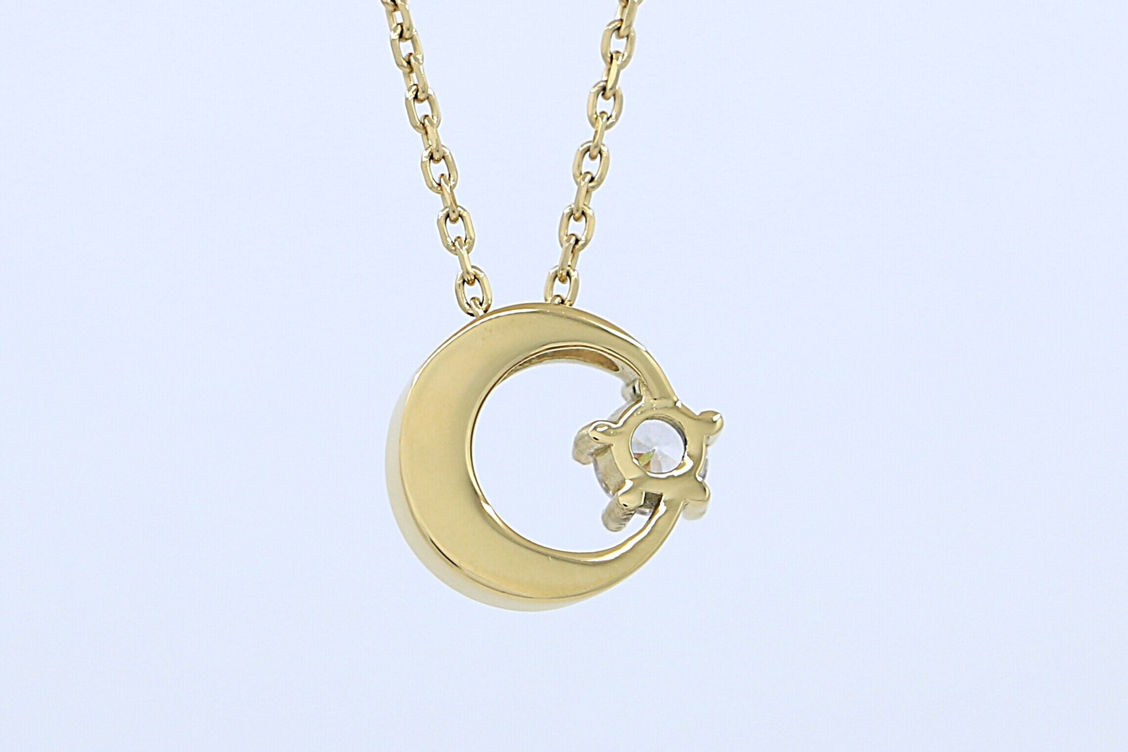 三日月にキュービックジルコニアをあしらい、上品な煌めきが首元を彩ります。