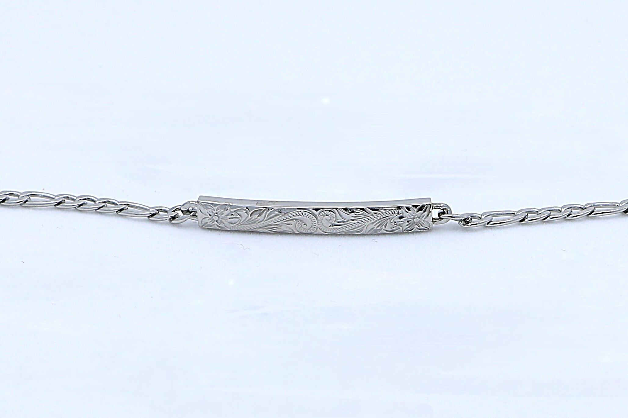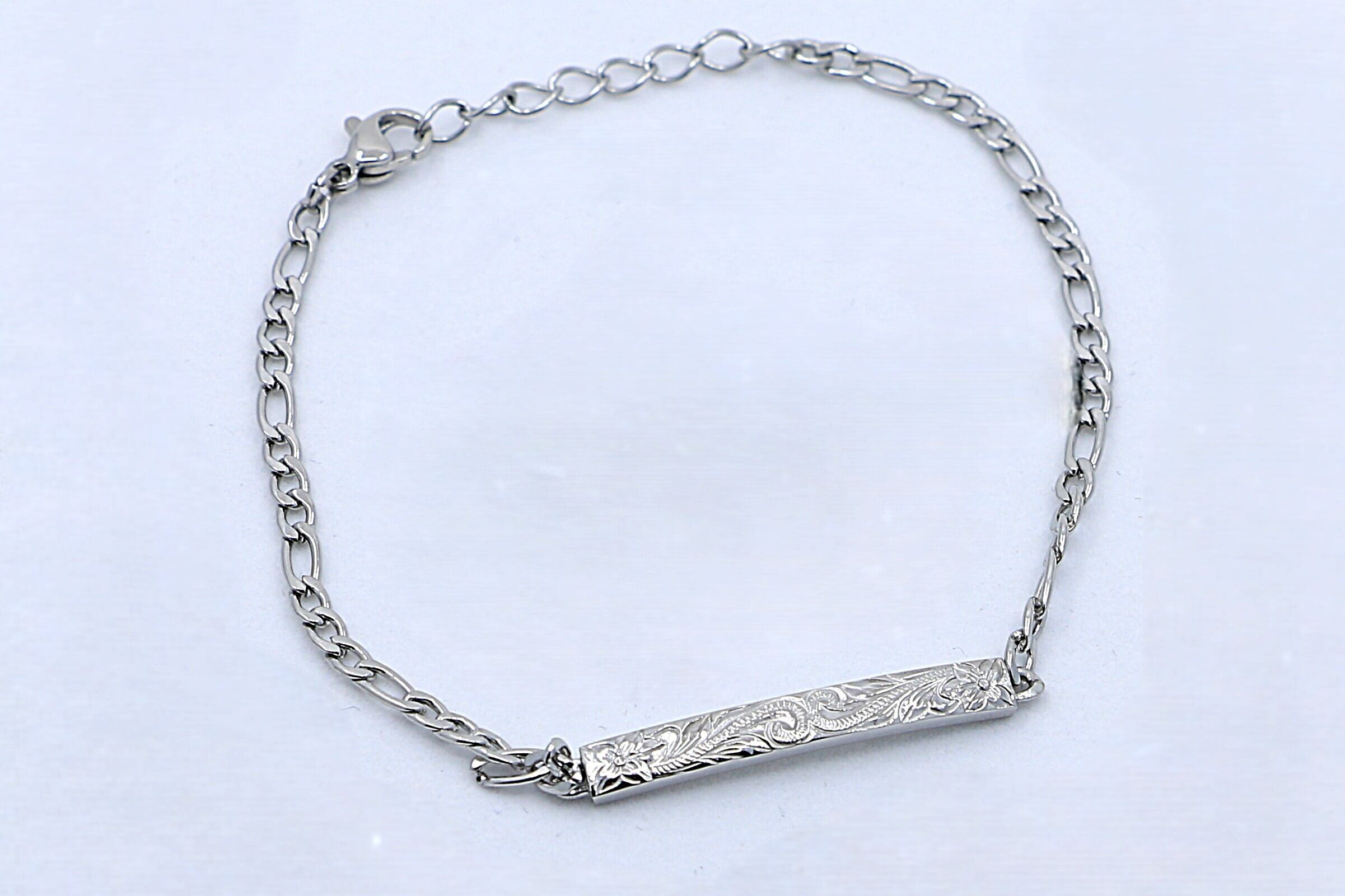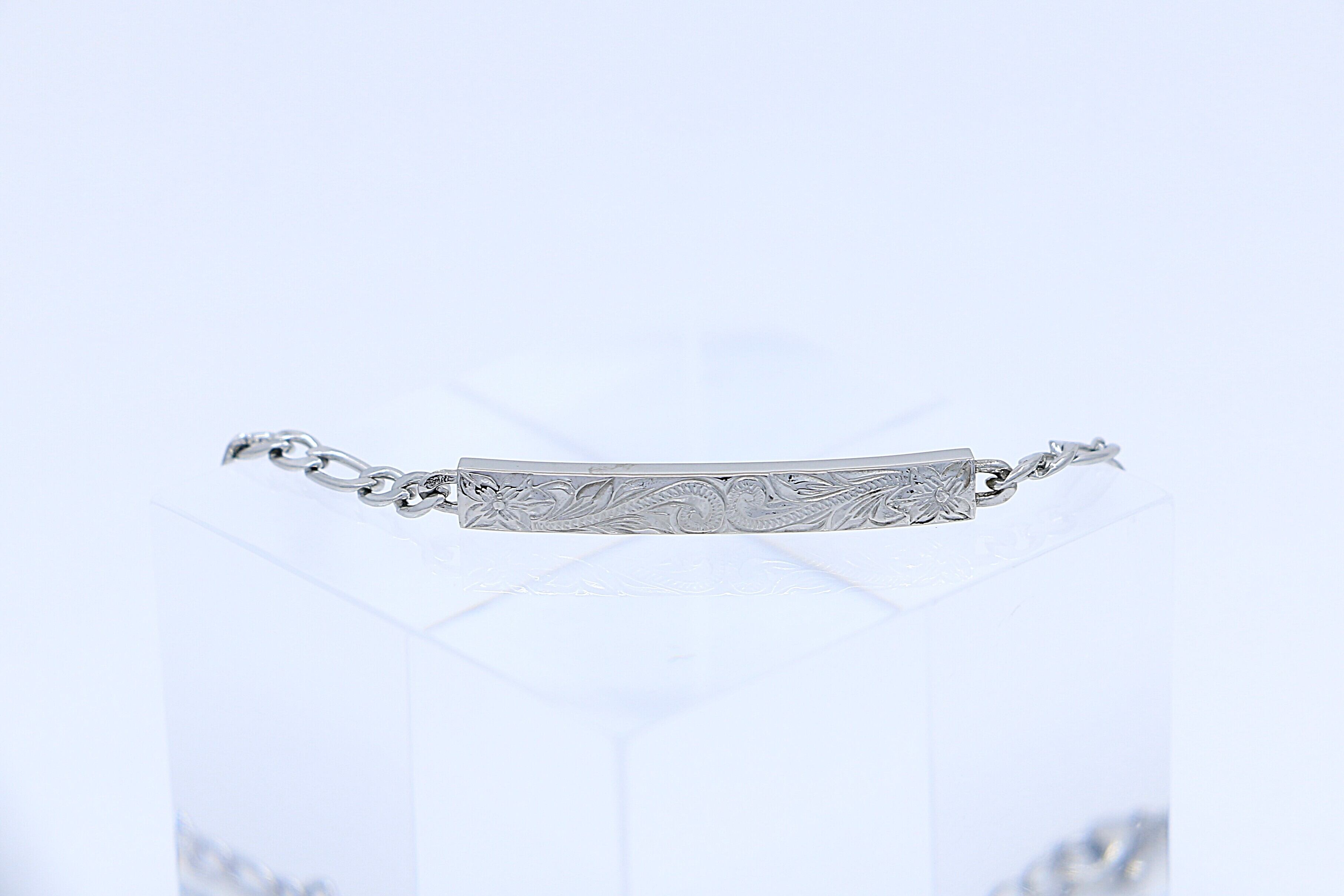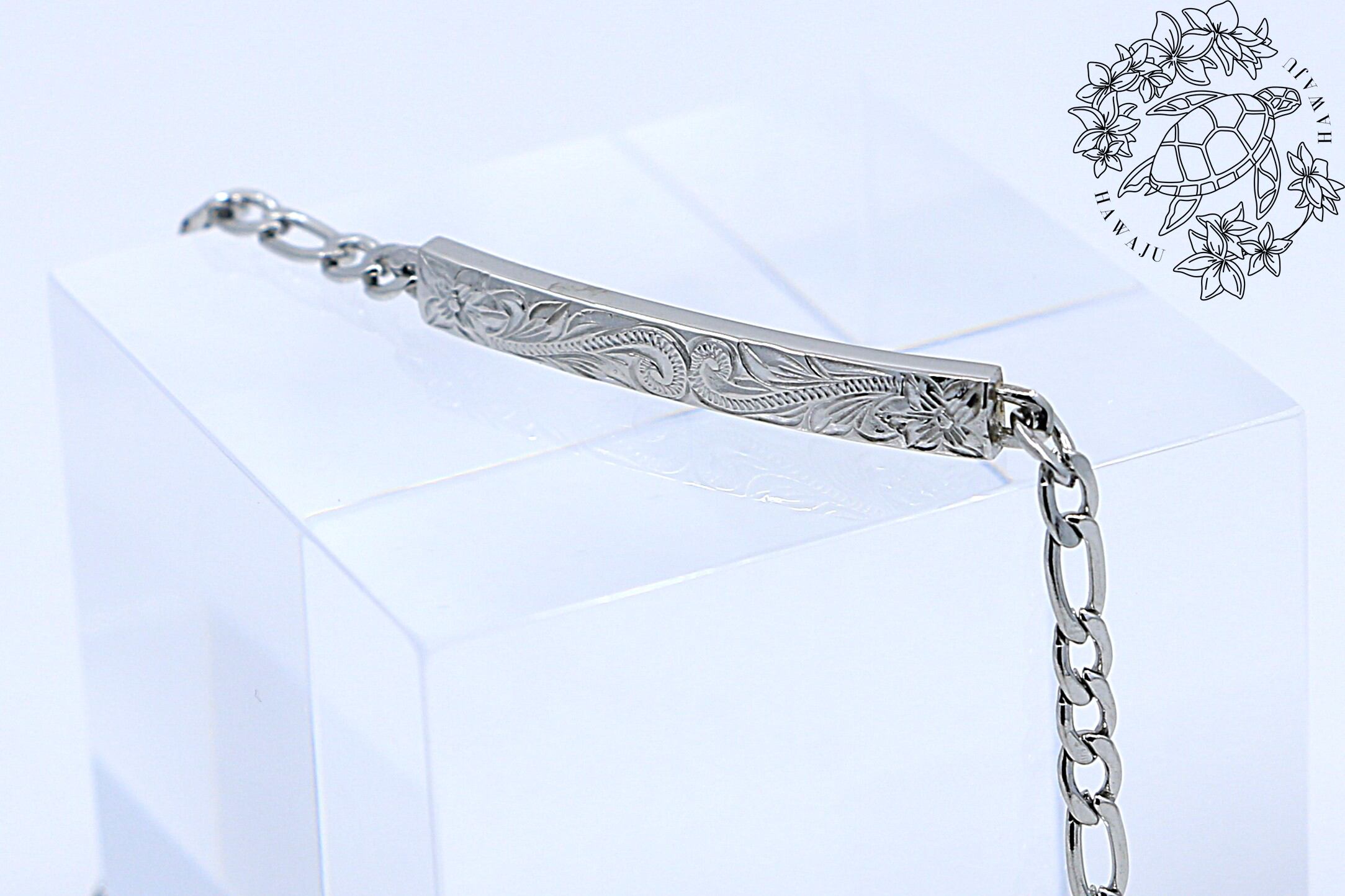 洗練されたシルバーカラーが魅力の、チェーンタイプのハワイアンスタイルのブレスレットです。ハワイ伝統模様でもあるヘリテイジデザインが、深い意味と美しさを手首に添えます。