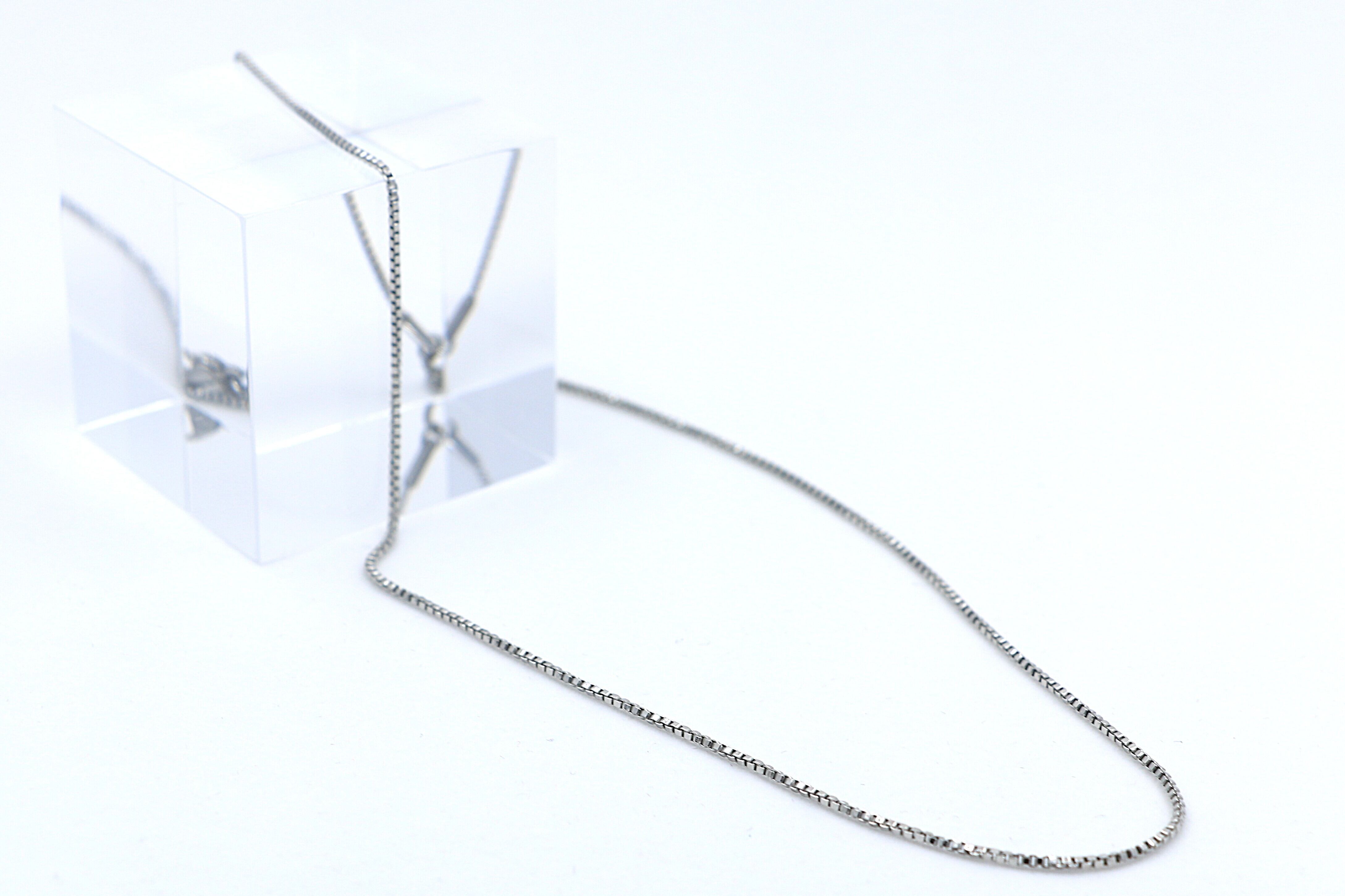シンプルでありながら洗練されたデザインが魅力のベネチアンチェーンは、四角いリンクが美しく連なる構造で、滑らかな質感と上品な輝きを放ちます。ペンダントチェーンとしても、単体のネックレスとしても使いやすく、どんなスタイルにも自然に溶け込む万能なアイテムです。