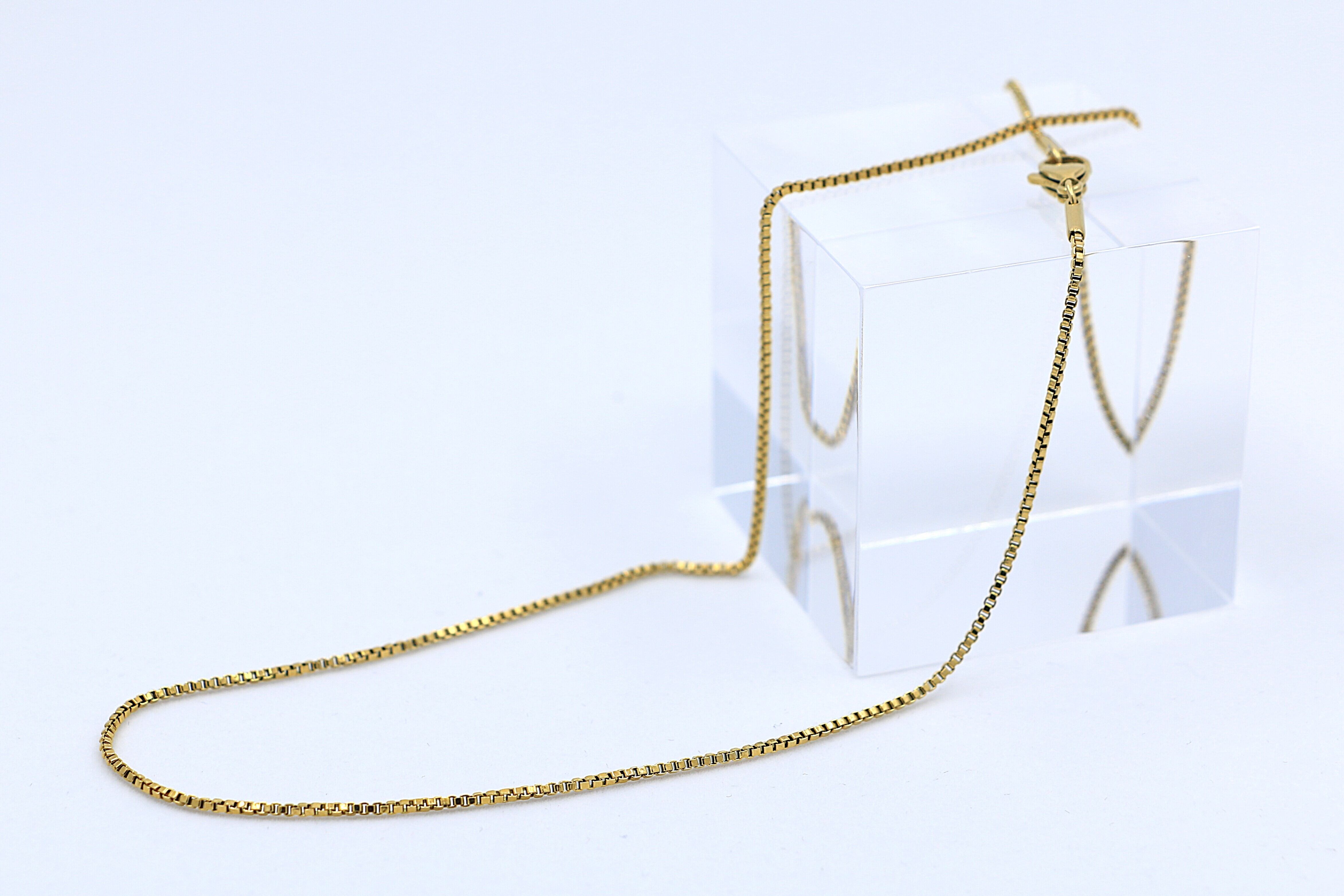 シンプルでありながら洗練されたデザインが魅力のベネチアンチェーンは、四角いリンクが美しく連なる構造で、滑らかな質感と上品な輝きを放ちます。ペンダントチェーンとしても、単体のネックレスとしても使いやすく、どんなスタイルにも自然に溶け込む万能なアイテムです。