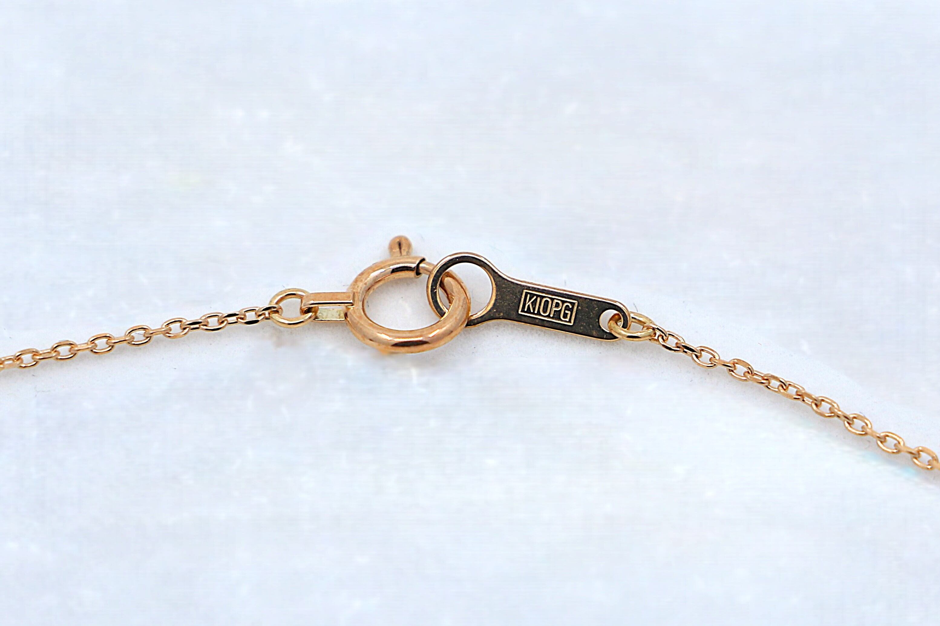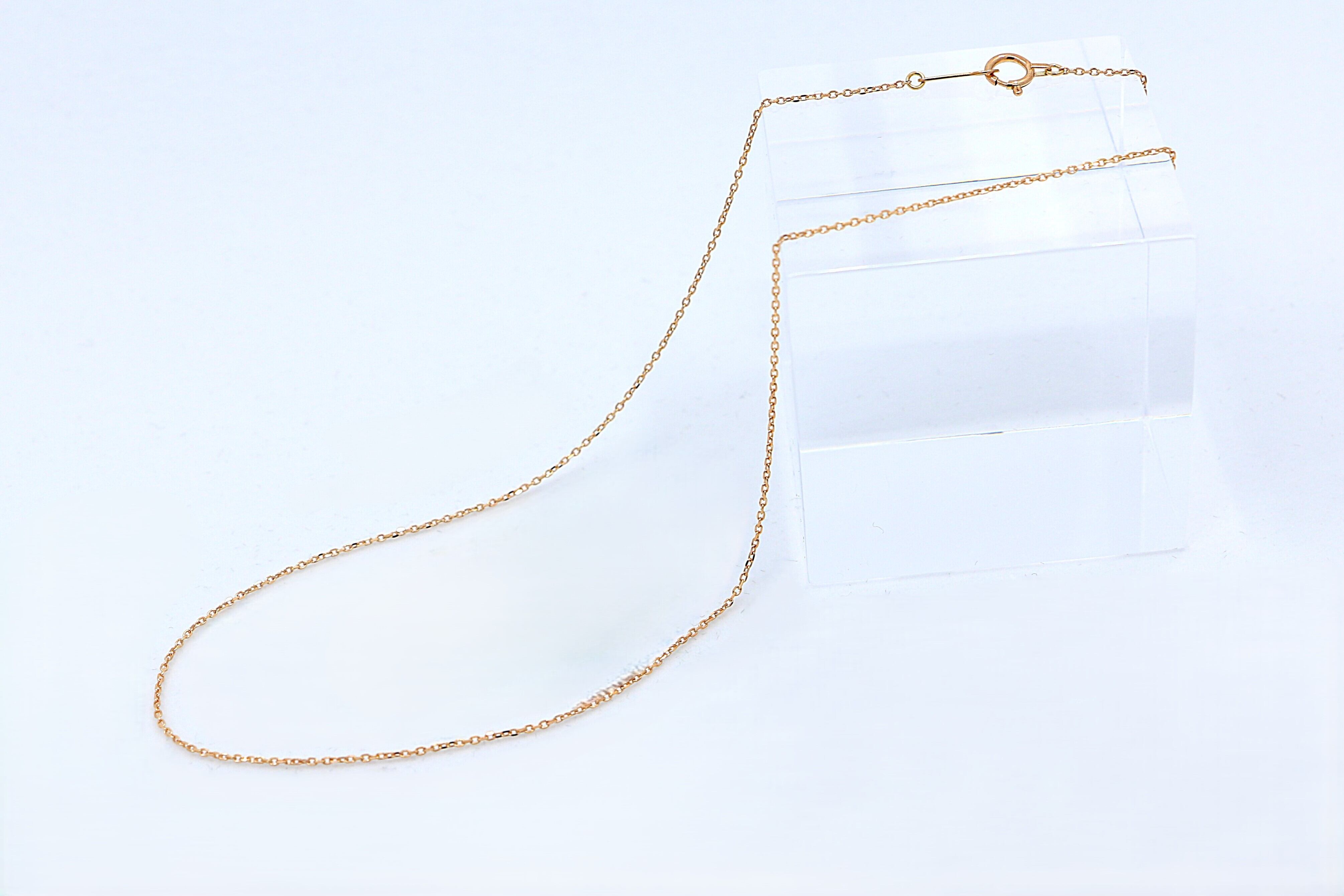 このチェーンは細かいリンクが連なったあずきチェーンで、チェーンのデザインとしてはシンプルですが、10Kならではのエレガントな印象を与えます。