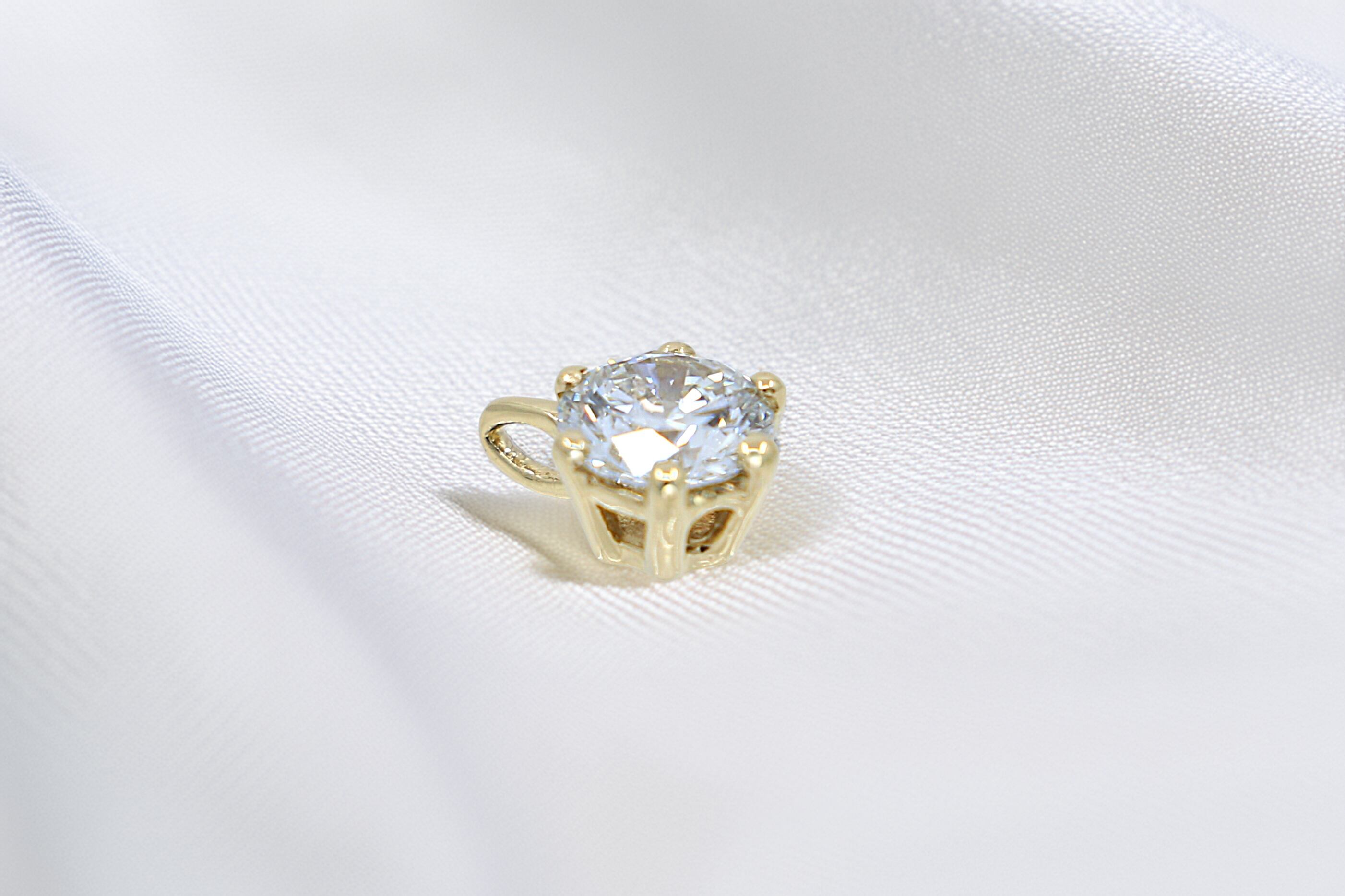14Kイエローゴールドは、ダイヤモンドに温かみを加える金属として人気です。そのやわらかでリッチなゴールドカラーが、ダイヤモンドの透明感と対比することで、クラシカルかつ華やかな印象を演出します。