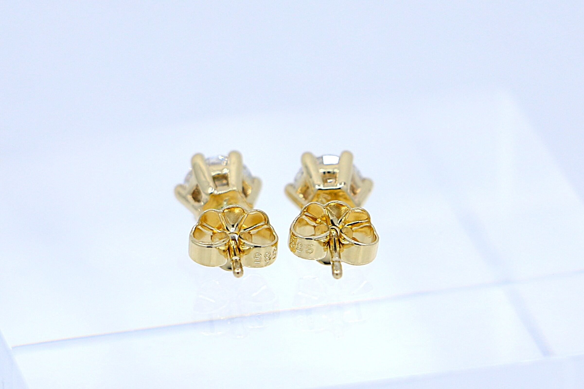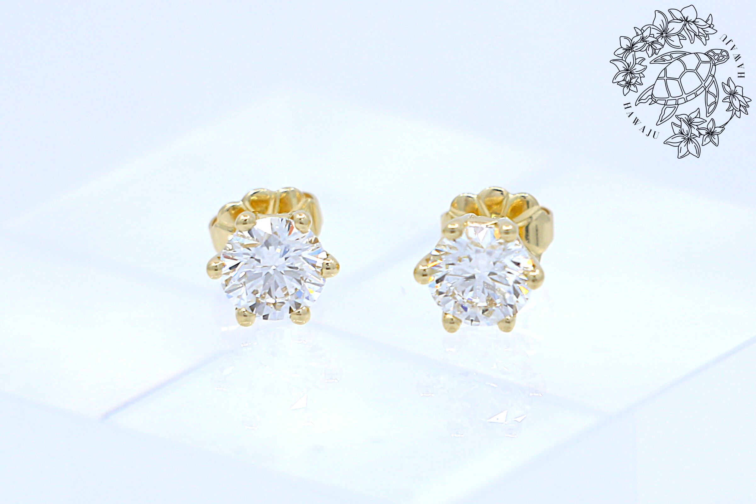 片耳0.75カラット、合計1.5カラットのラボグロウンダイヤモンドを、14Kイエローゴールドの台座でセッティングしたポストタイプのピアスです。シンプルながら存在感のあるデザインは、デイリーにもフォーマルにも溶け込む万能アイテムです。また、ハワイアンジュエリーとしての魅力をも併せ持ち、気品漂う一品となっております。