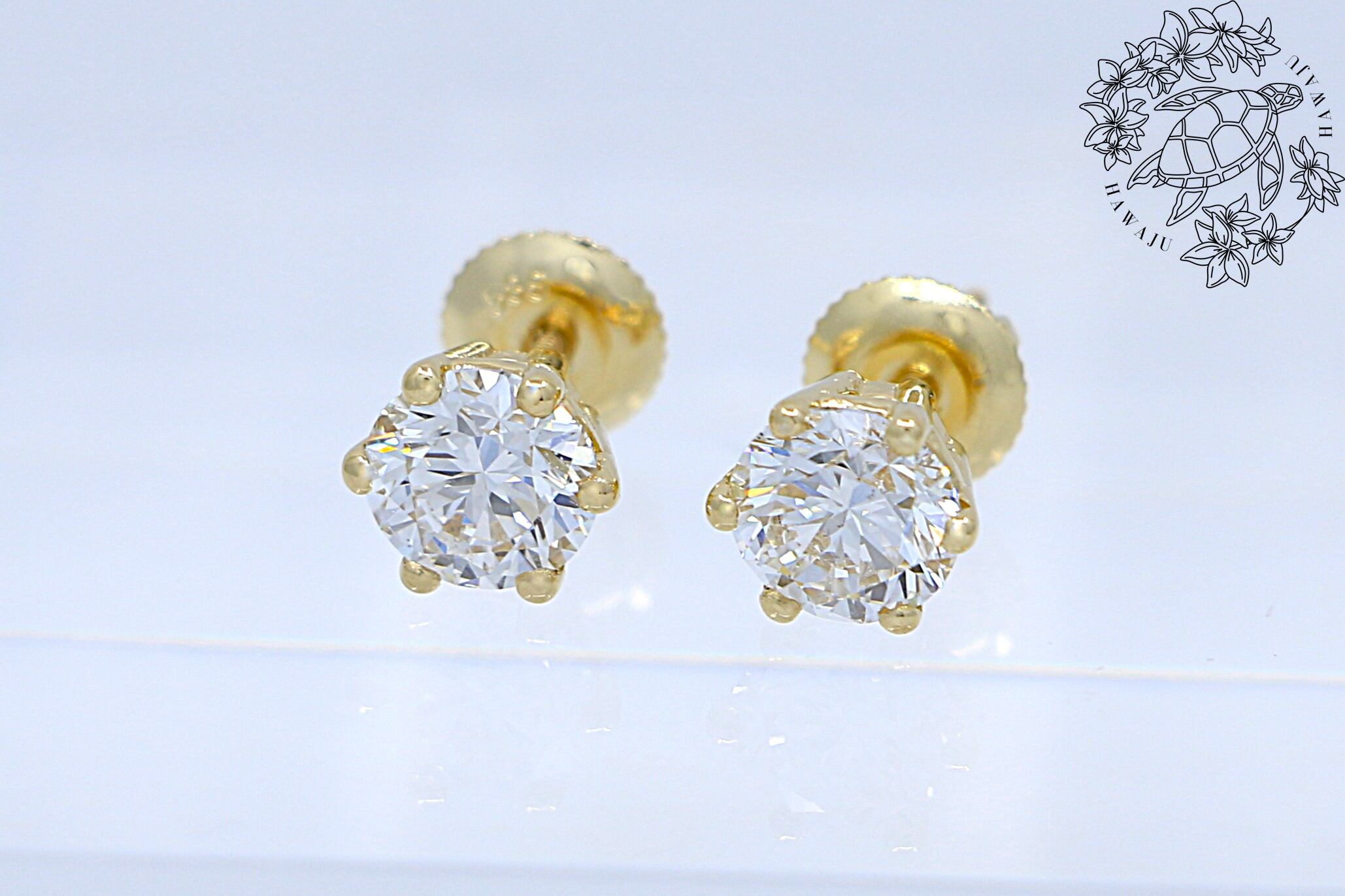 片耳1.0カラット、合計2.0カラットのラボグロウンダイヤモンドを、14Kイエローゴールドの台座でセッティングしたポストタイプのピアスです。シンプルながら存在感のあるデザインは、デイリーにもフォーマルにも溶け込む万能アイテムです。また、ハワイアンジュエリーとしての魅力をも併せ持ち、気品漂う一品となっております。