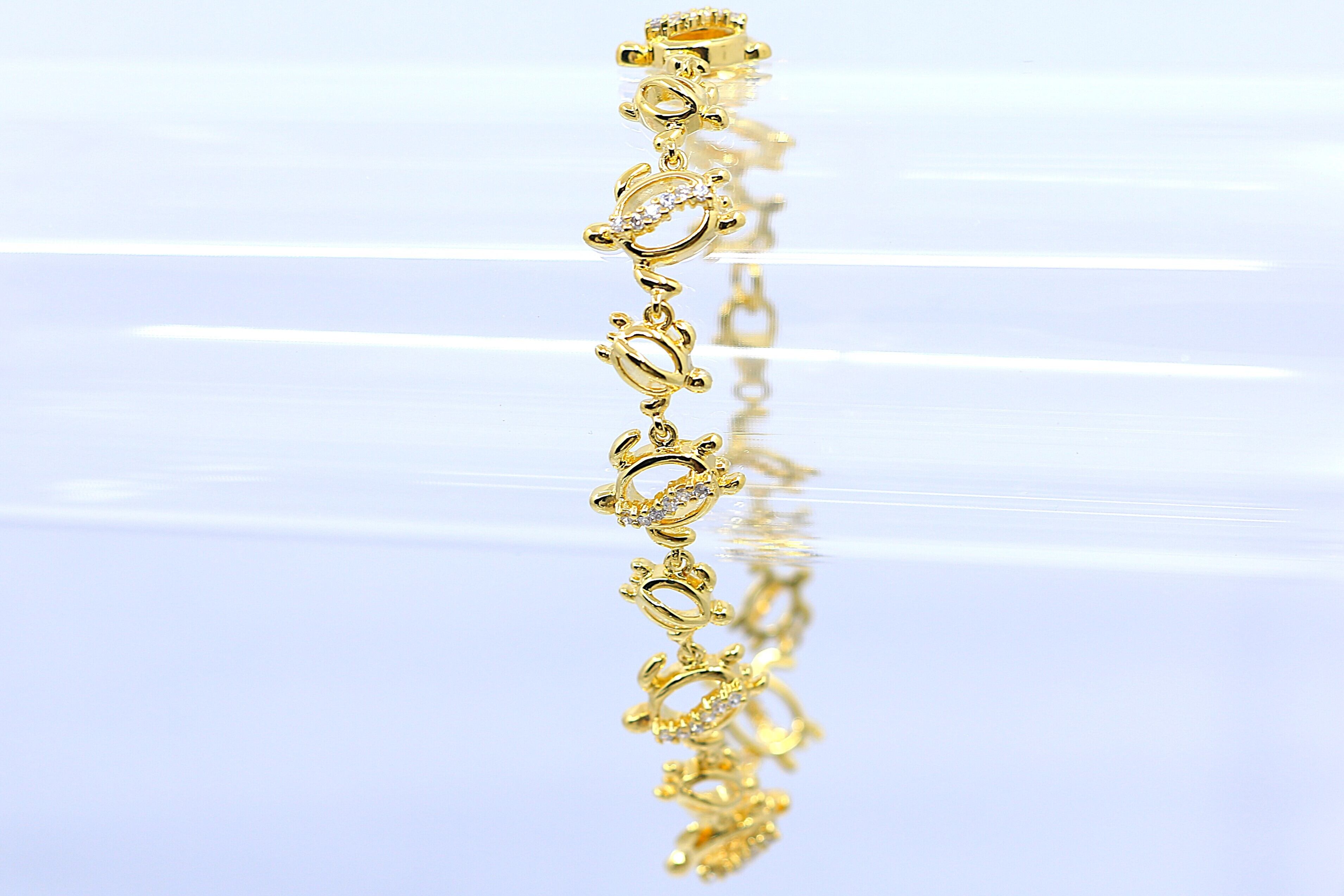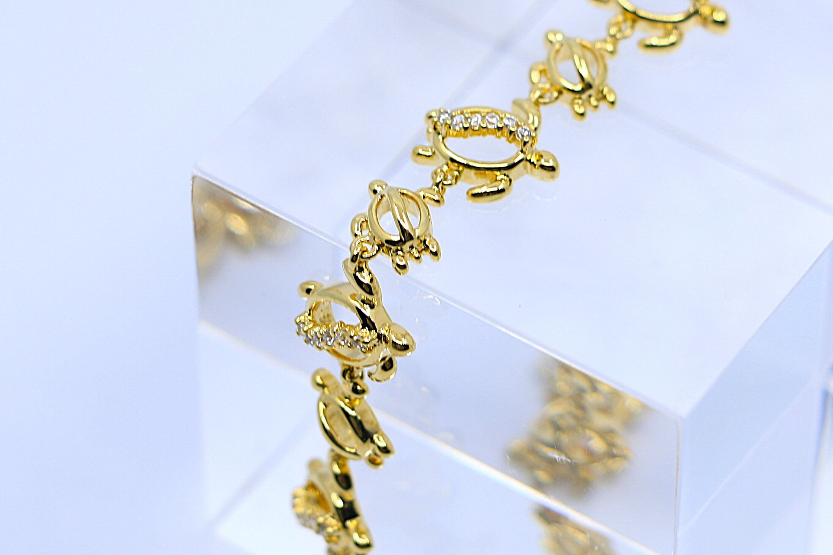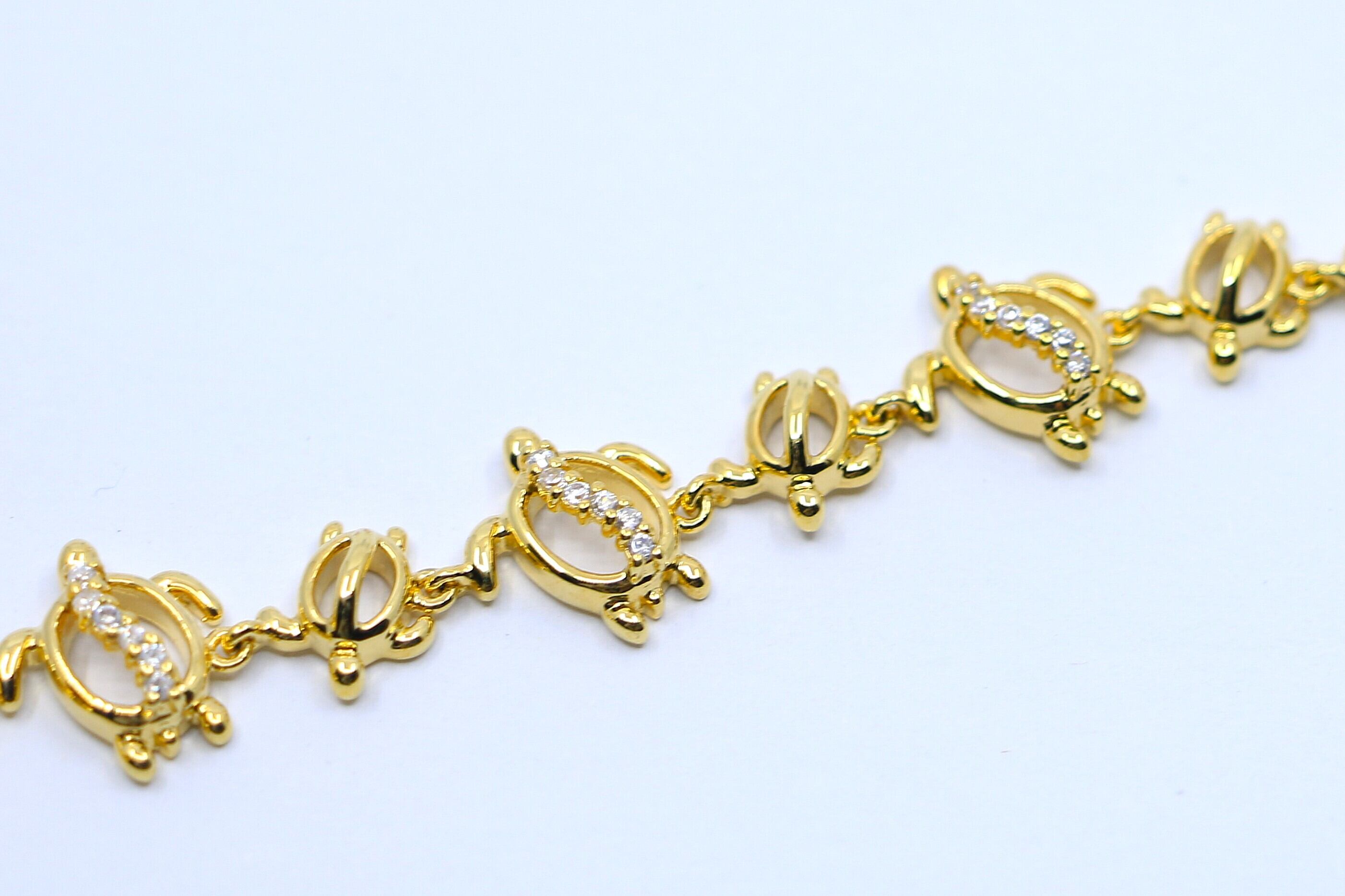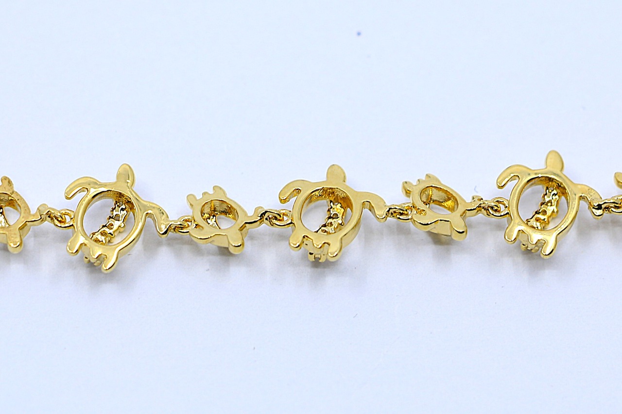 ハワイで“幸運の象徴”とされるホヌ(ウミガメ)が連なる、美しく華やかなブレスレットです。