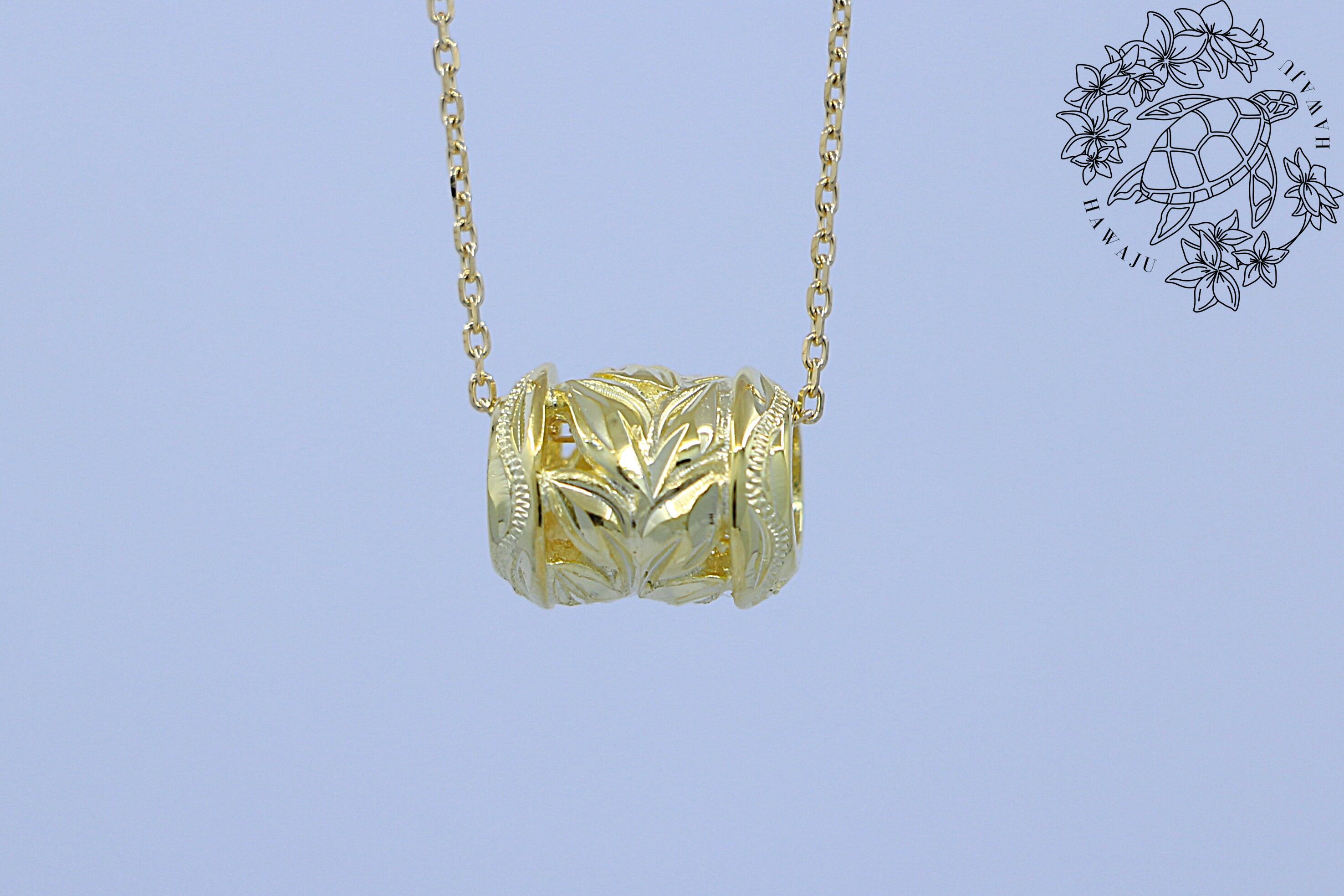 ハワイの神聖な葉「マイレ」をモチーフにした、バレル型(樽型)のペンダントトップです。