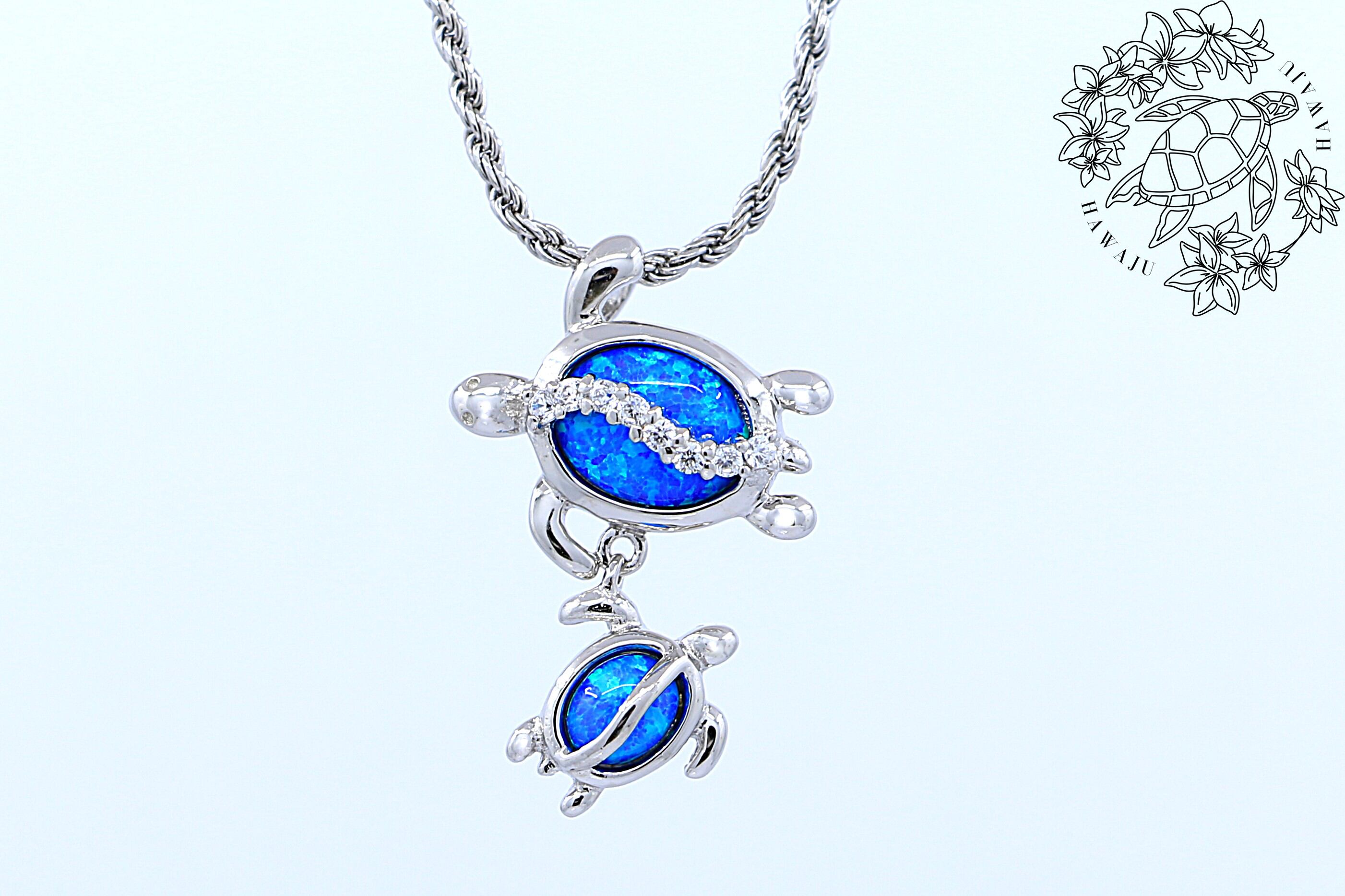 絆を感じる親子のホヌ(ウミガメ)デザインが心を癒す、愛と幸運のペンダントトップです。