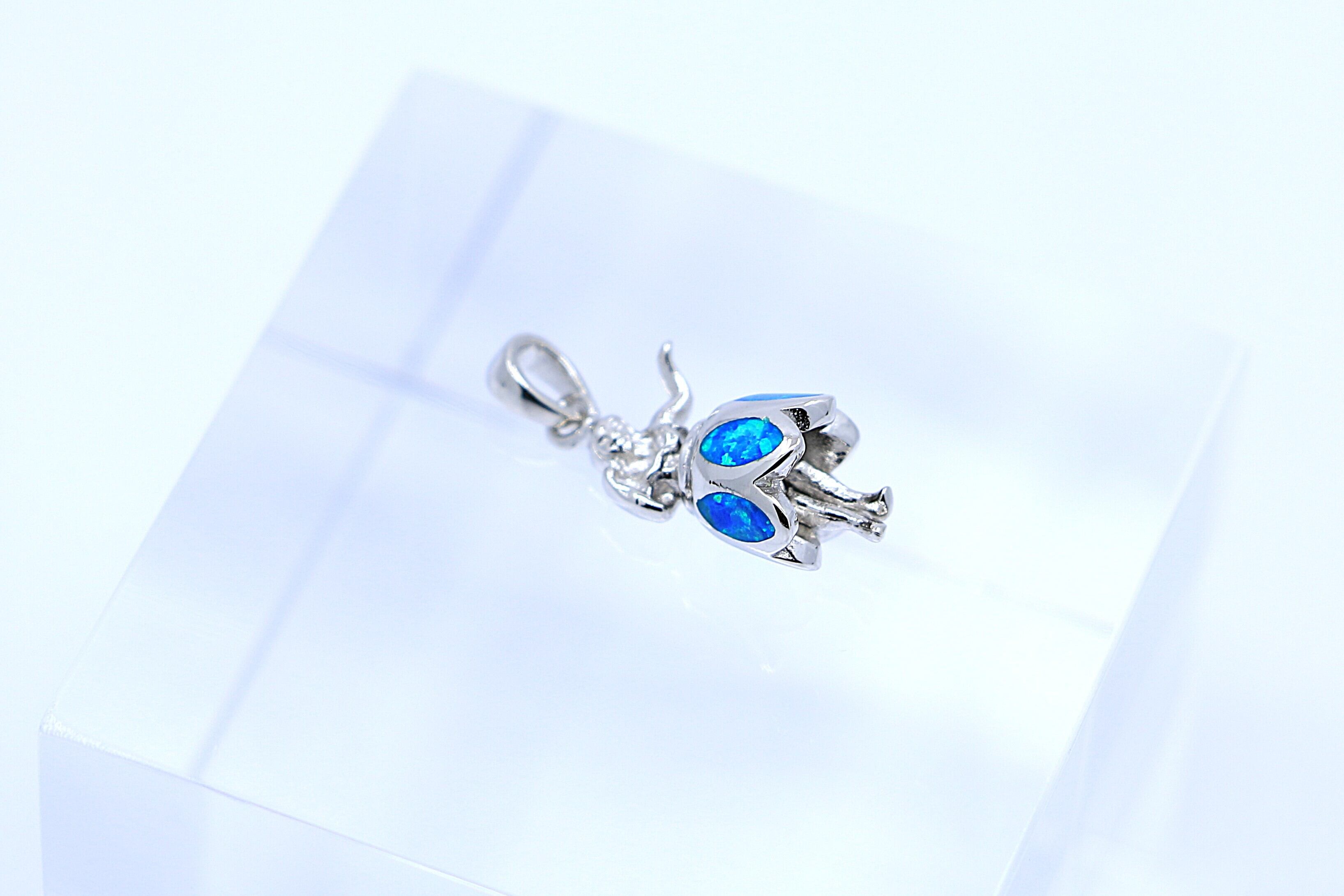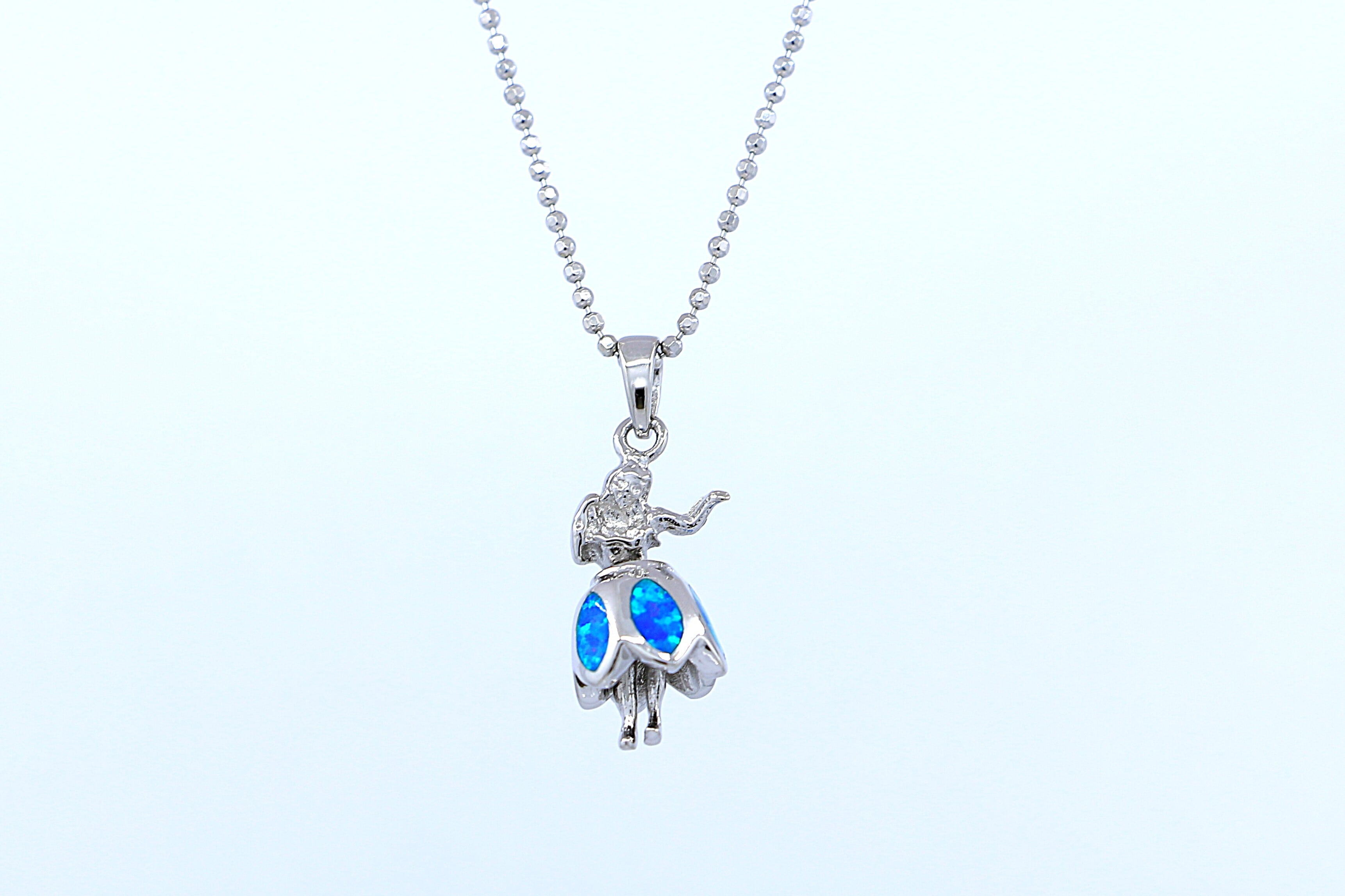 ペンダントには、深い青色が特徴的なブルーオパールがあしらわれています。オパールは光の角度によって異なる色合いを見せるため、見るたびに新たな魅力を発見できる石です。ブルーオパールは癒しの石としても知られており、その独特な輝きが、ペンダント全体に神秘的で幻想的な印象を与えます。身に着けることで、心の平穏と安心感をもたらすことでしょう。