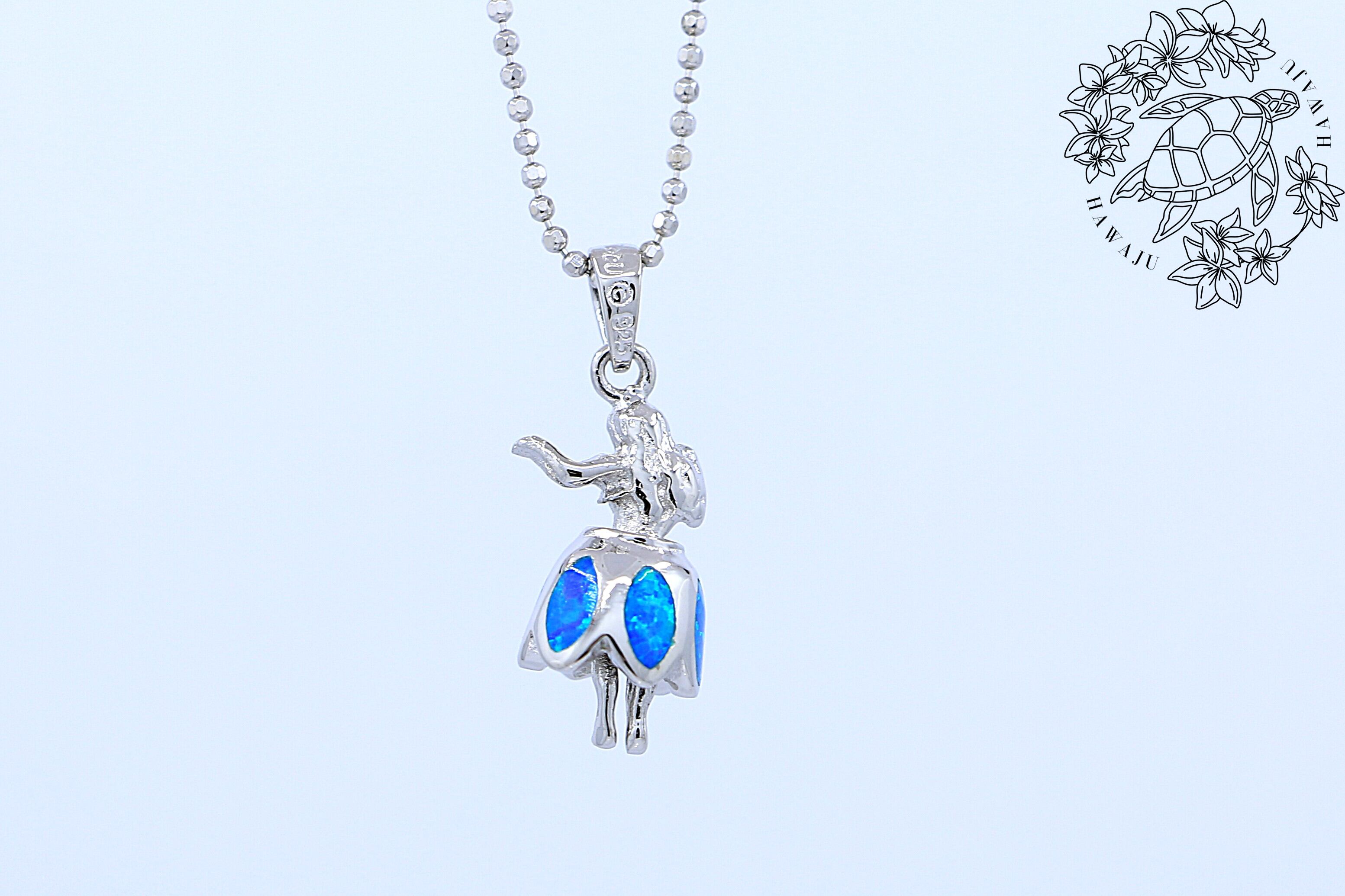 フラガールはハワイの文化を象徴する存在で、楽しさや喜びを表現するダンスを通じて、人々に幸せを届けます。このペンダントトップを身に着けることで、あなたもその魅力を身近に感じることができます。ブルーオパールが加わることで、より一層の愛らしさと華やかさを引き立てています。