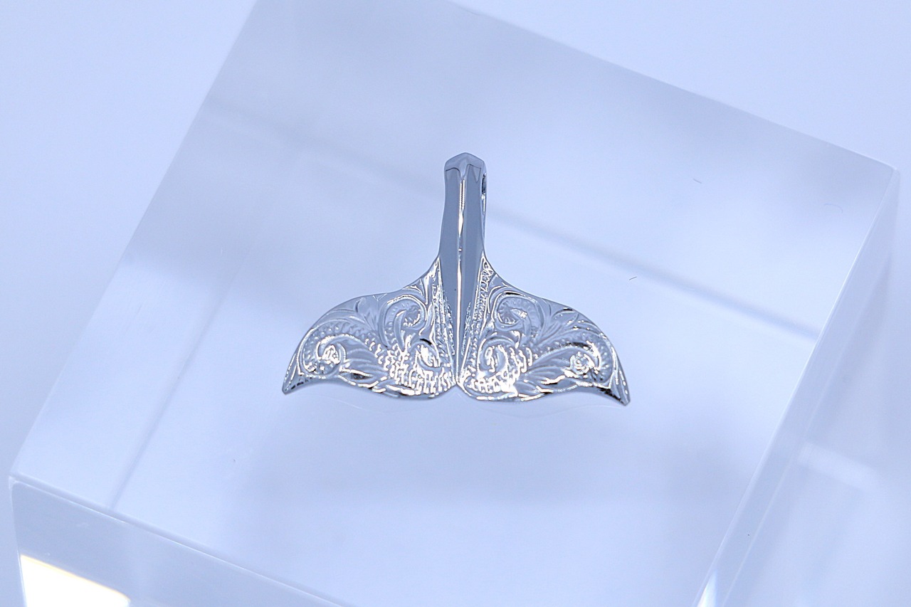 大海原を悠々と泳ぐクジラの尾(ホエールテール)をモチーフにした、ハワイアンジュエリーらしい存在感あるペンダントトップ。