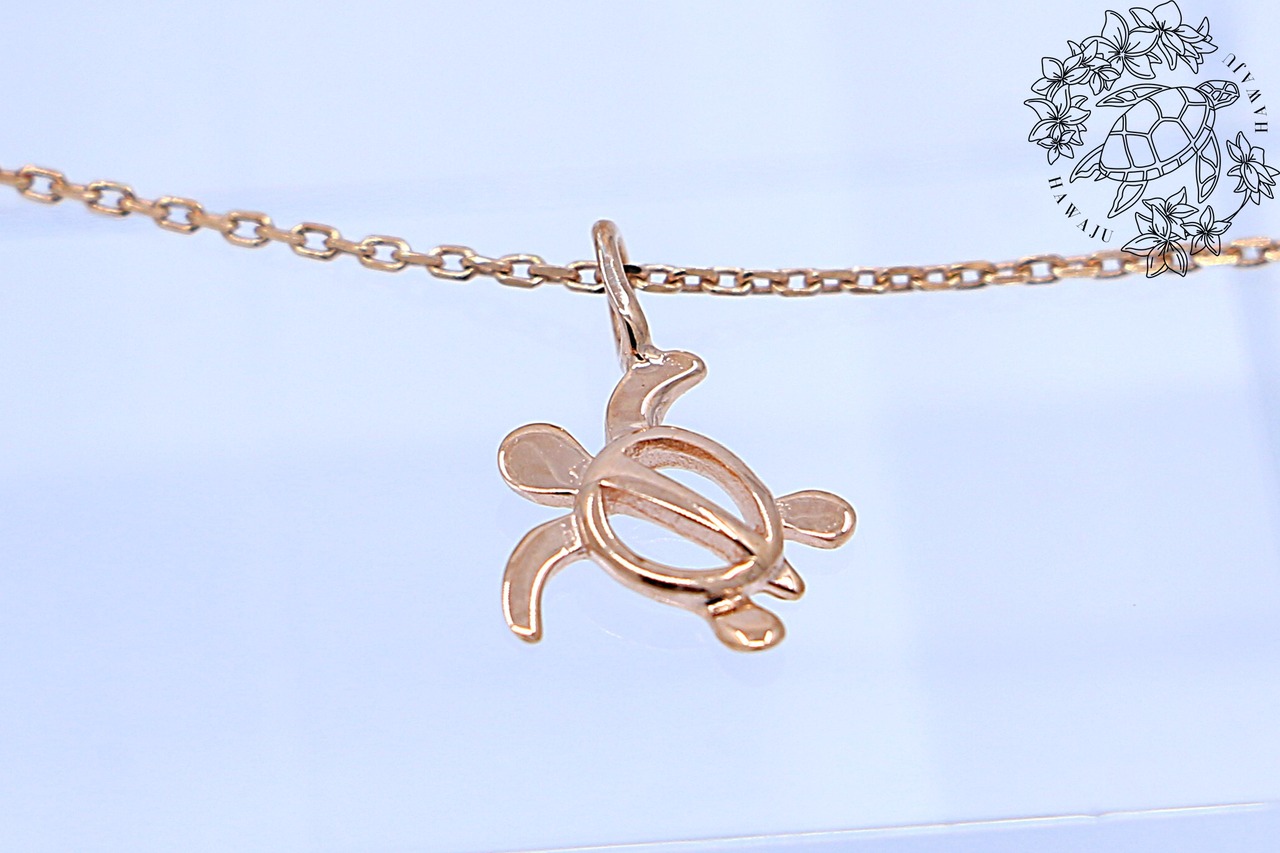 愛らしいホヌ(ウミガメ)がデザインされたこのチャームは、ピンクゴールドの輝きが美しいハワイアンジュエリーです。高品質なSterling Silver(925)を使用し、しっかりとしたデザインで丁寧に仕上げられています。ホヌは、ハワイ文化において「長寿」や「平和」の象徴とされており、身に着けることで特別な意味を持つアイテムとして親しまれています。
