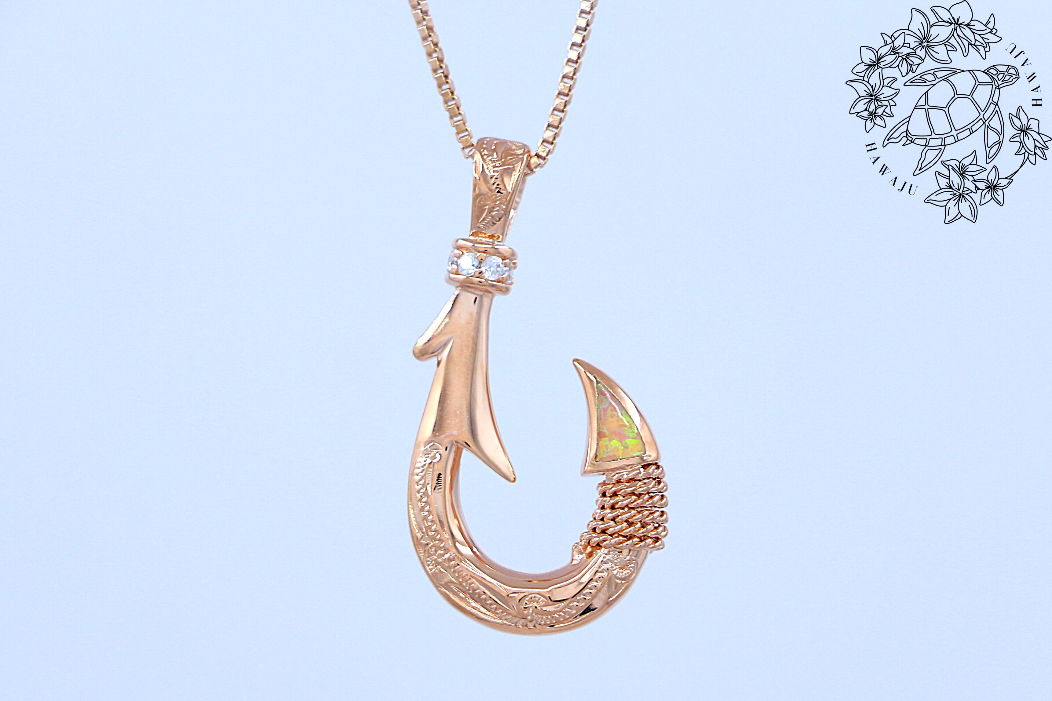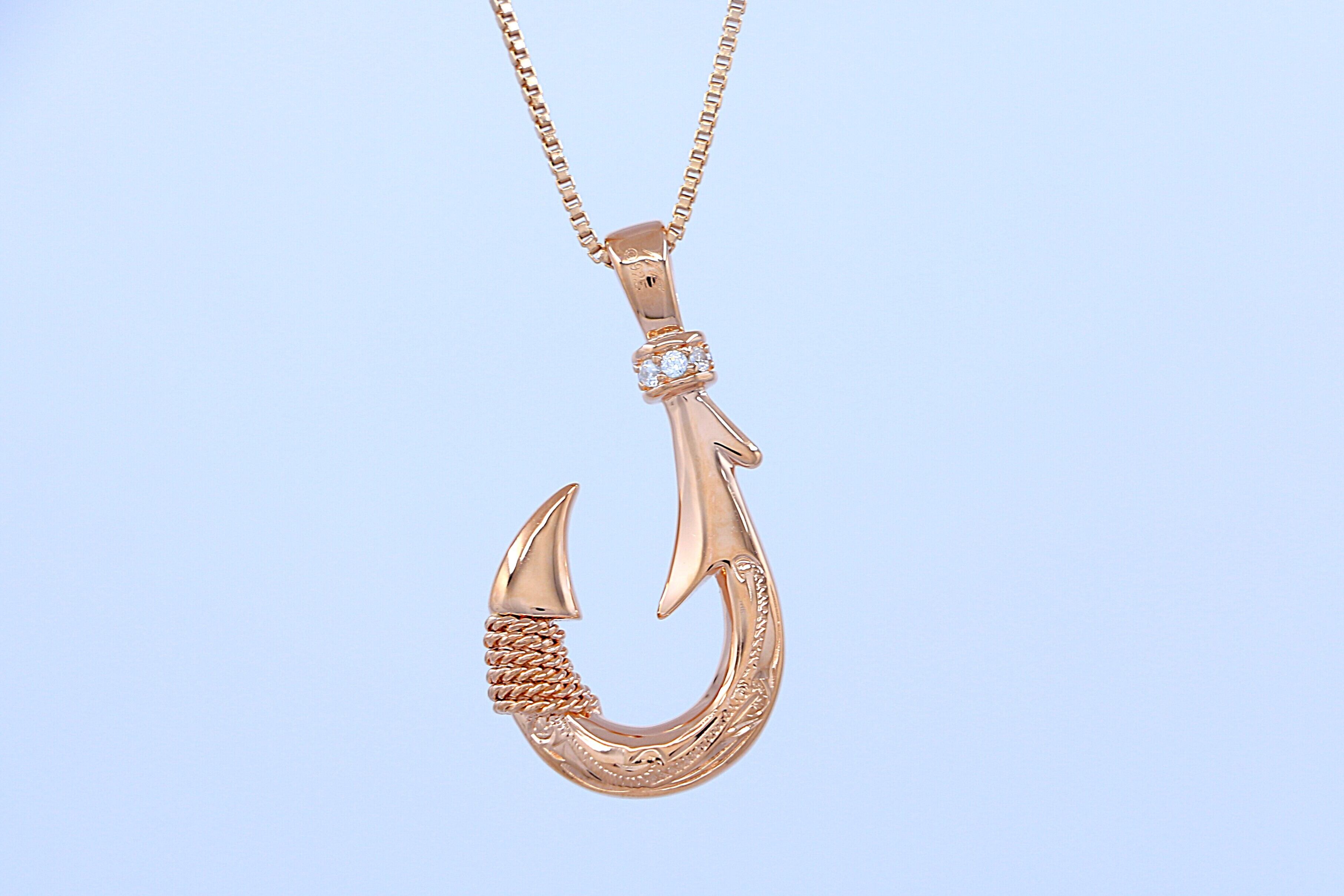 フィッシュフック(釣り針)は、ハワイやポリネシア文化において「幸運」「強さ」「成功」「海の守護」を象徴するデザインとされ、大切な人へのギフトやお守りとしても人気があります。