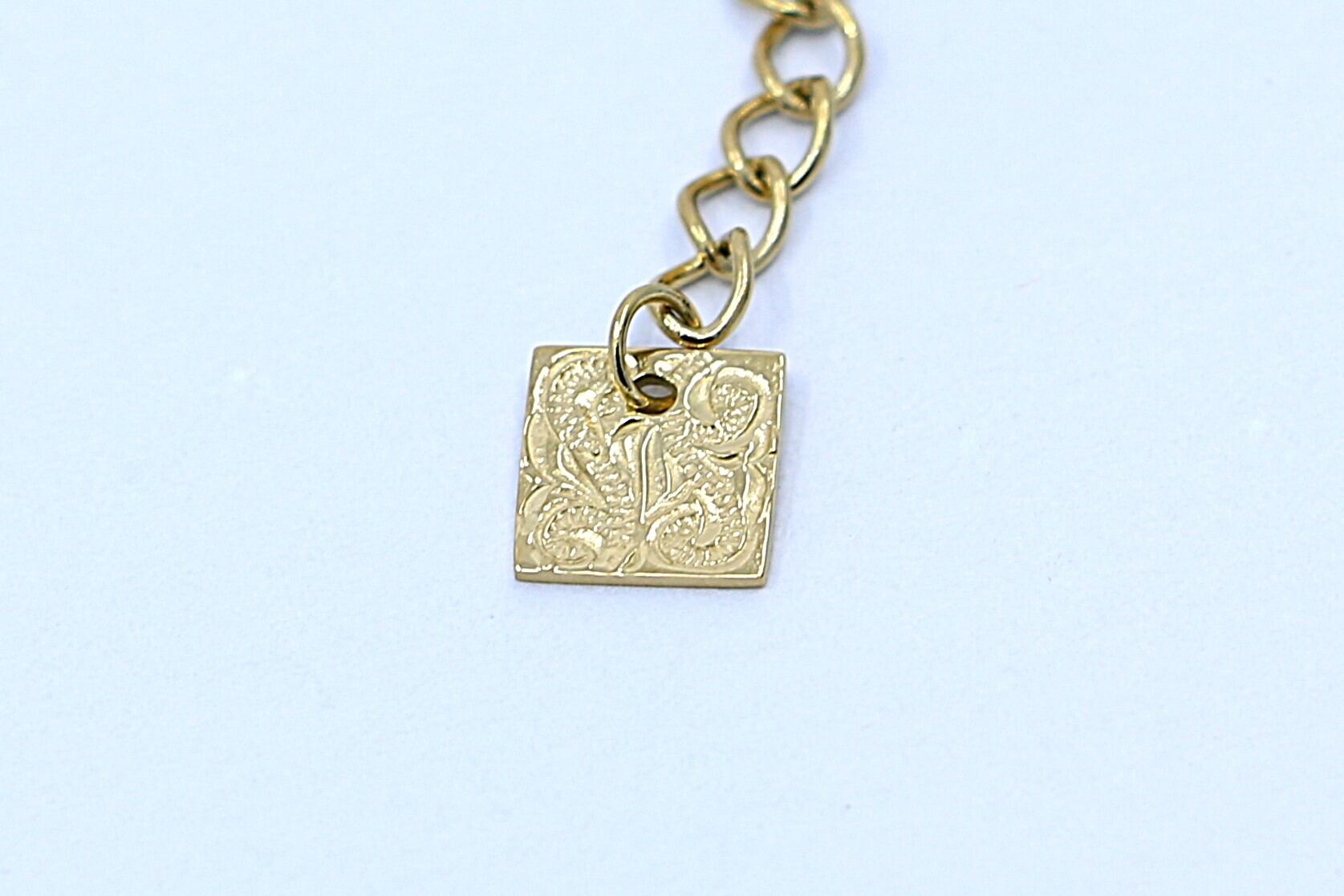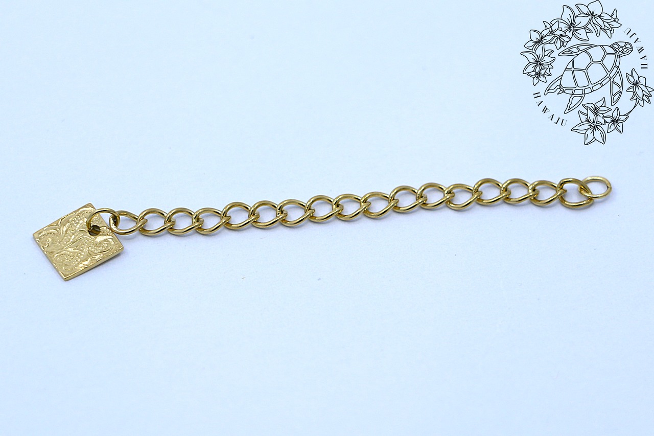 シンプルなチェーンデザインに、ハワイアンジュエリーらしい模様が刻まれたスクエアプレートがアクセントに。控えめながらも上品に揺れ、後ろ姿までおしゃれに演出してくれます。