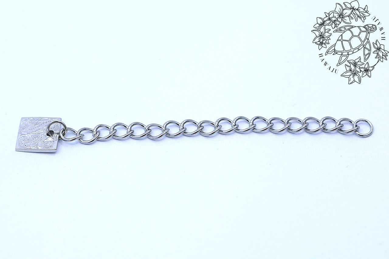 シンプルなチェーンデザインに、ハワイアンジュエリーらしい模様が刻まれたスクエアプレートがアクセントに。控えめながらも上品に揺れ、後ろ姿までおしゃれに演出してくれます。