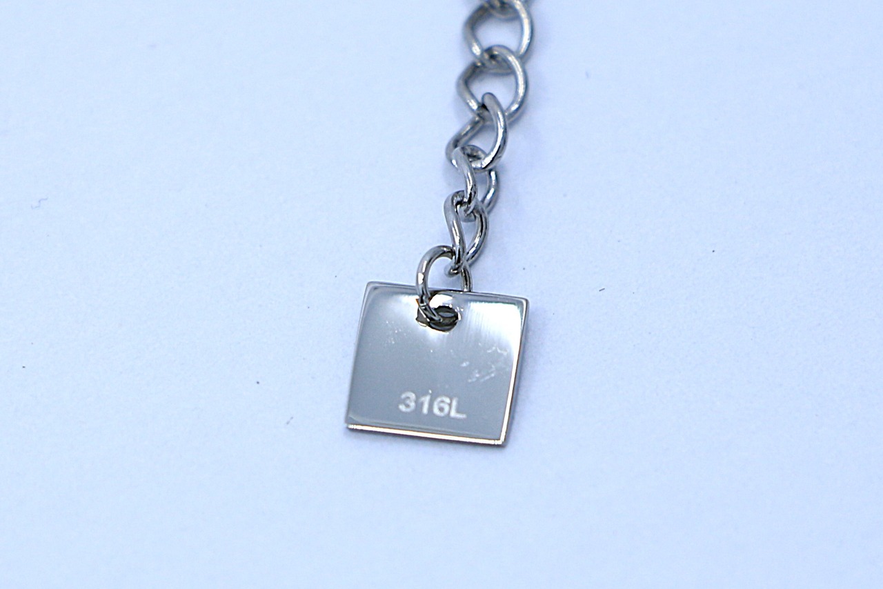 素材には サージカルステンレス316L を使用しており、金属アレルギーを起こしにくく、汗や水にも強いのが特徴。日常使いはもちろん、長時間の着用でも安心してお使いいただけます。
