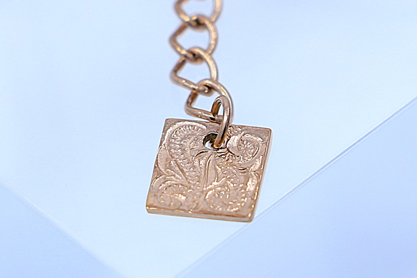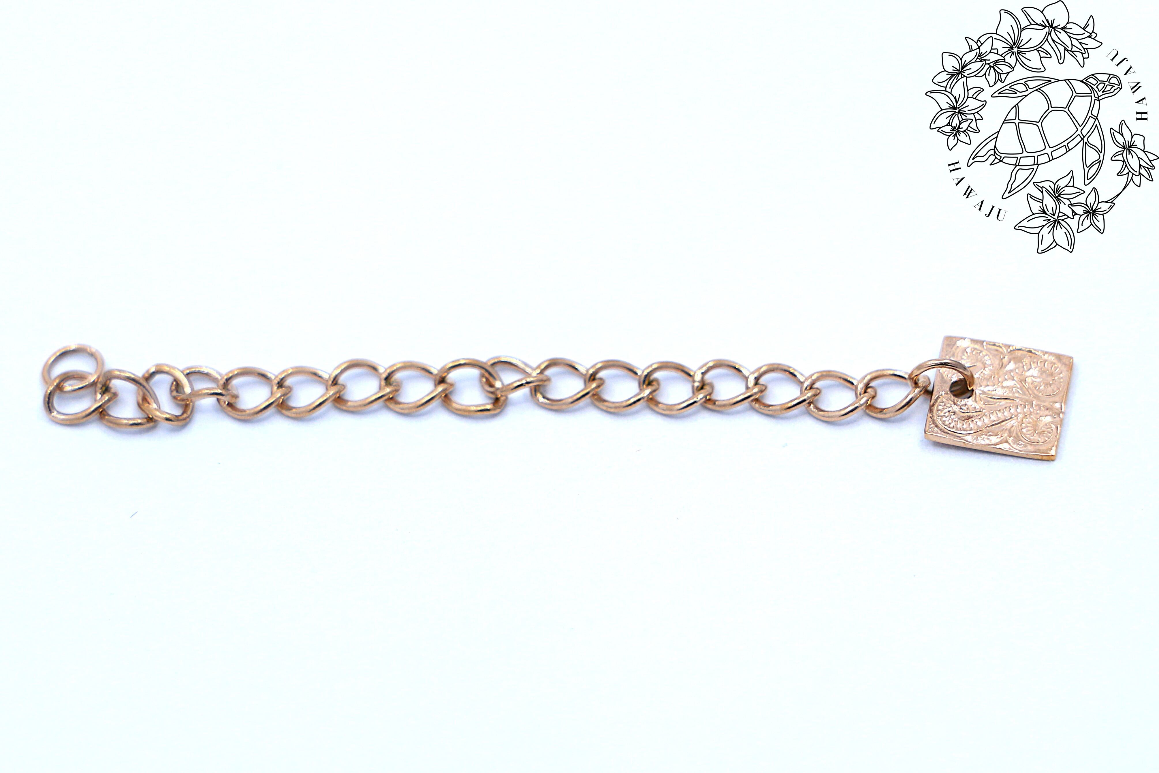 シンプルなチェーンデザインに、ハワイアンジュエリーらしい模様が刻まれたスクエアプレートがアクセントに。控えめながらも上品に揺れ、後ろ姿までおしゃれに演出してくれます。
