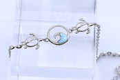 シルバーのチェーンとモチーフは、日常使いにも耐えうる耐久性と、ラリマーを引き立てる上品な輝きが魅力です。カジュアルスタイルからリゾートファッションまで幅広く活躍します。