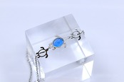 シルバーの上品な輝きが、ブルーオパールの神秘的な色合いとキュービックジルコニアの透明感を引き立て、洗練された印象を演出。日常にも特別な日にも映えるデザインです。