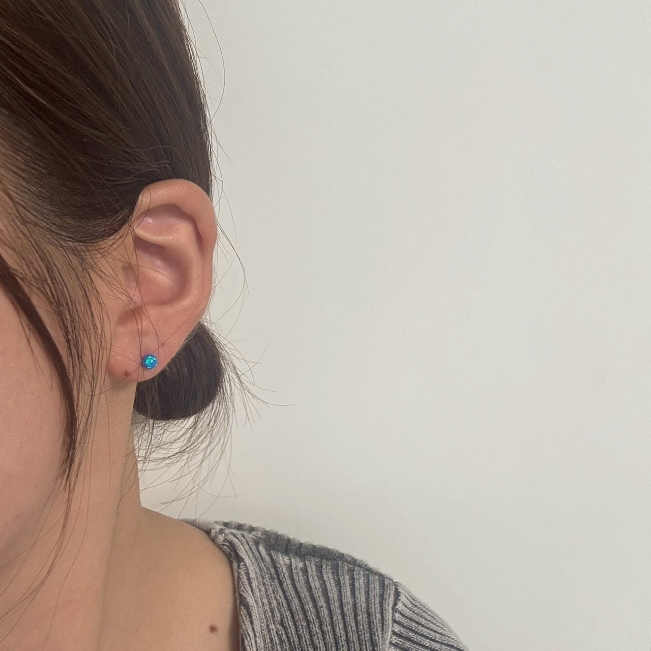 海の癒しを宿すブルーオパールが、耳元にやさしく輝きを添えます。