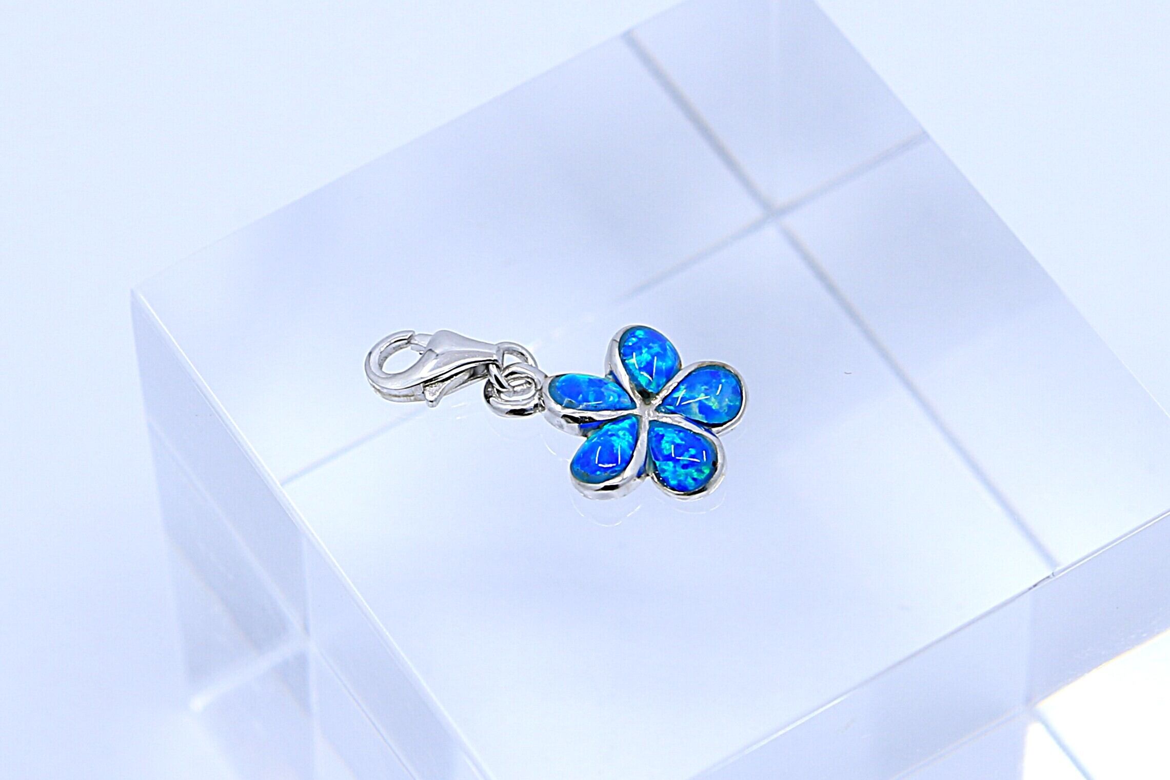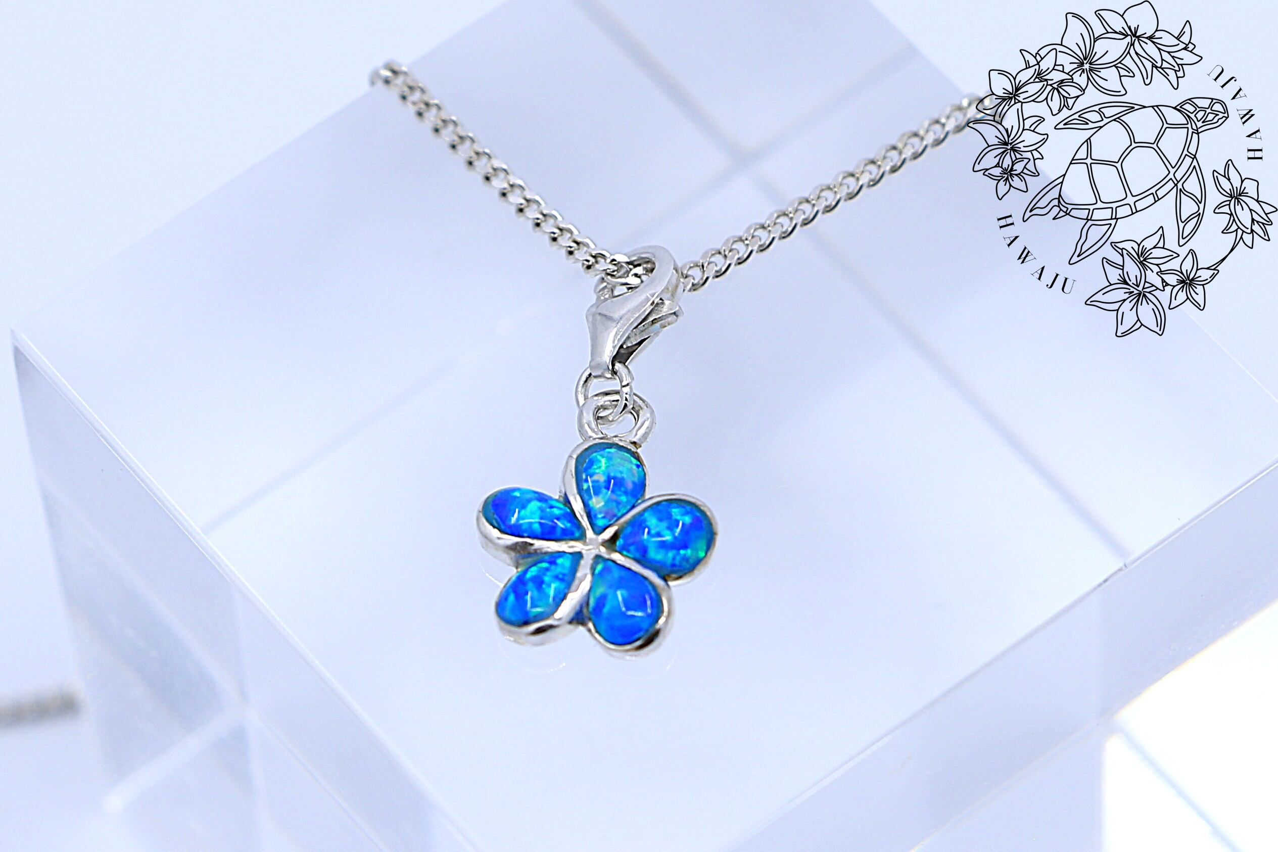 ブルーオパールの神秘的な輝きを宿したフラワーチャームが、やさしく華やぎを添えます。ハワイの自然と文化を感じながら、特別な瞬間を彩るアイテムをぜひお楽しみください。