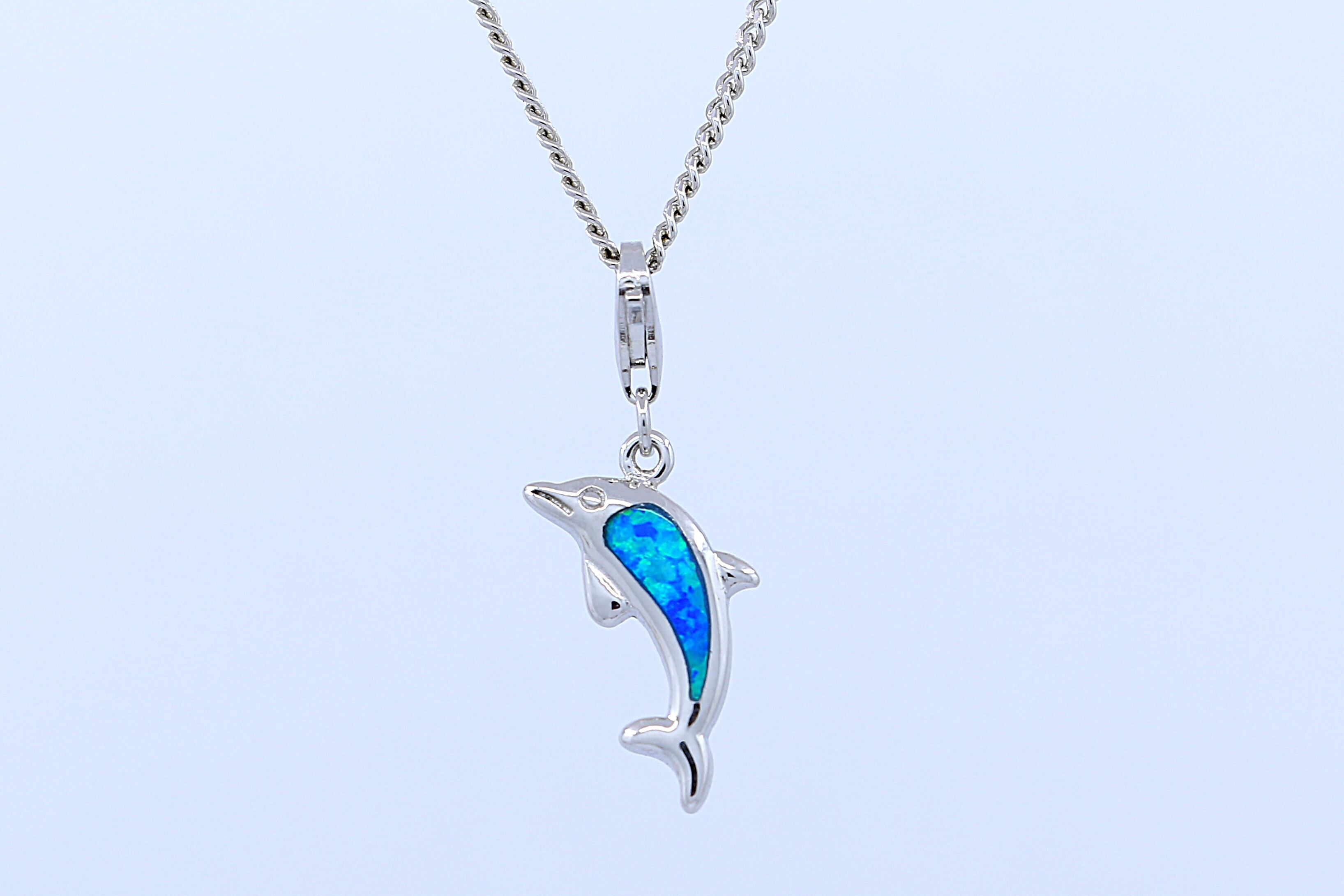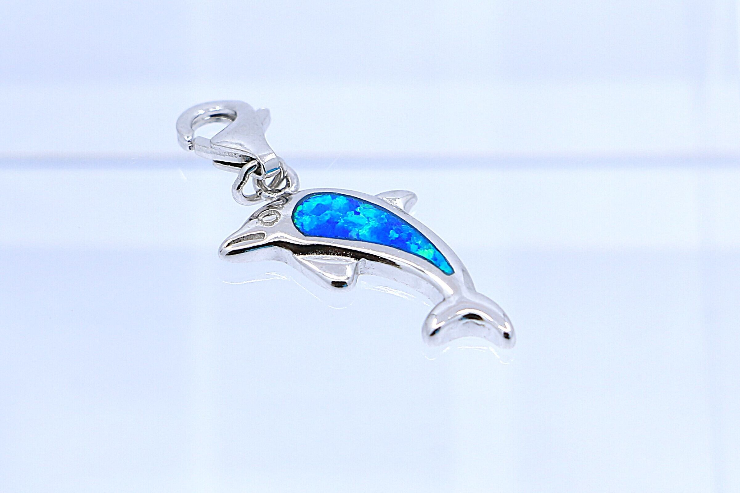 ブルーオパールが輝くドルフィンチャームは、海のスピリットを感じさせる特別なアイテム。