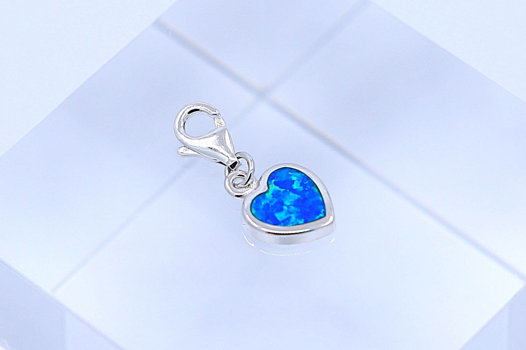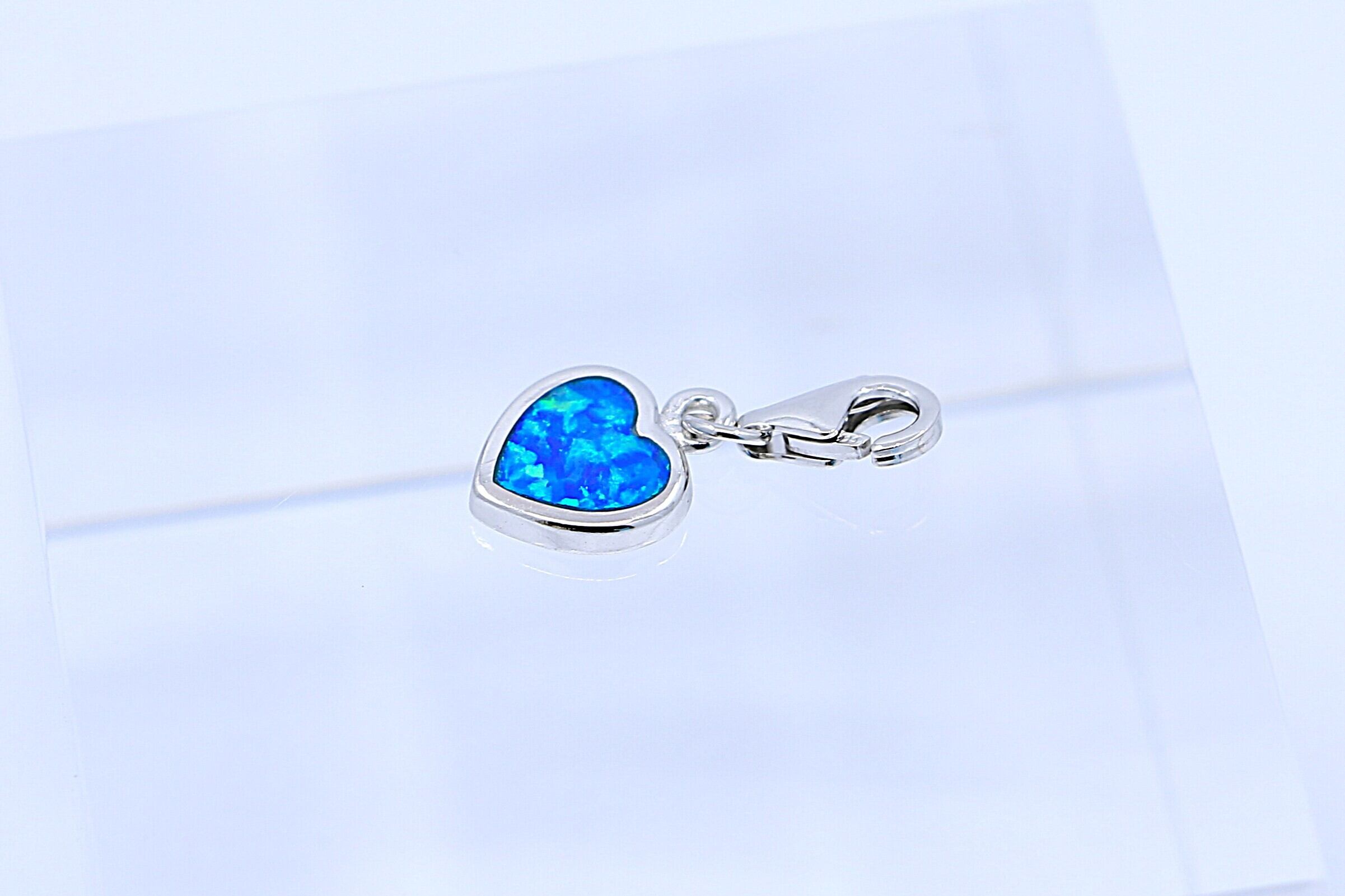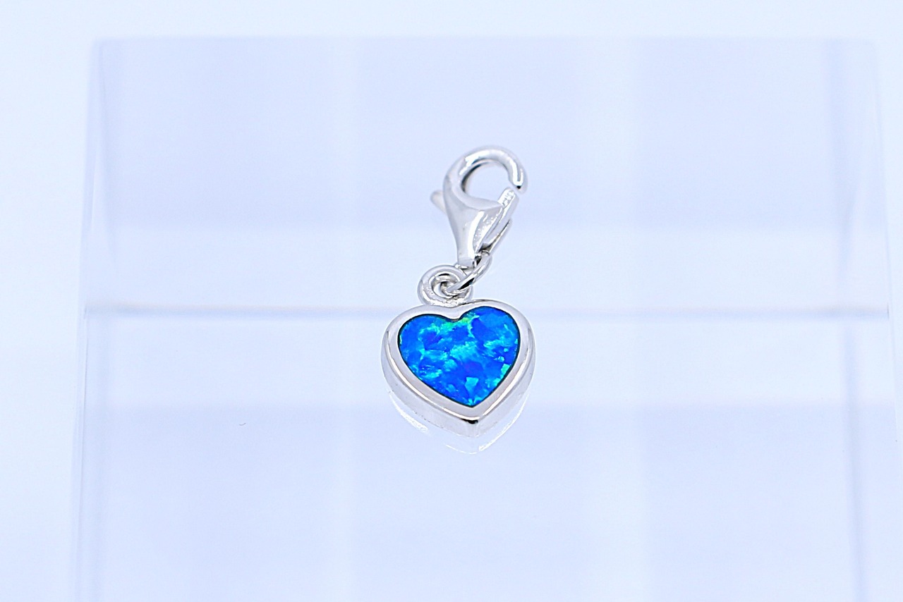 ハートの表面にブルーオパールをあしらい、光の角度で色合いが変わる神秘的な輝きが手元や首元に華やかさを添えます。Sterling Silver(シルバー925)の柔らかな輝きと組み合わせることで、洗練された存在感を引き立てます。