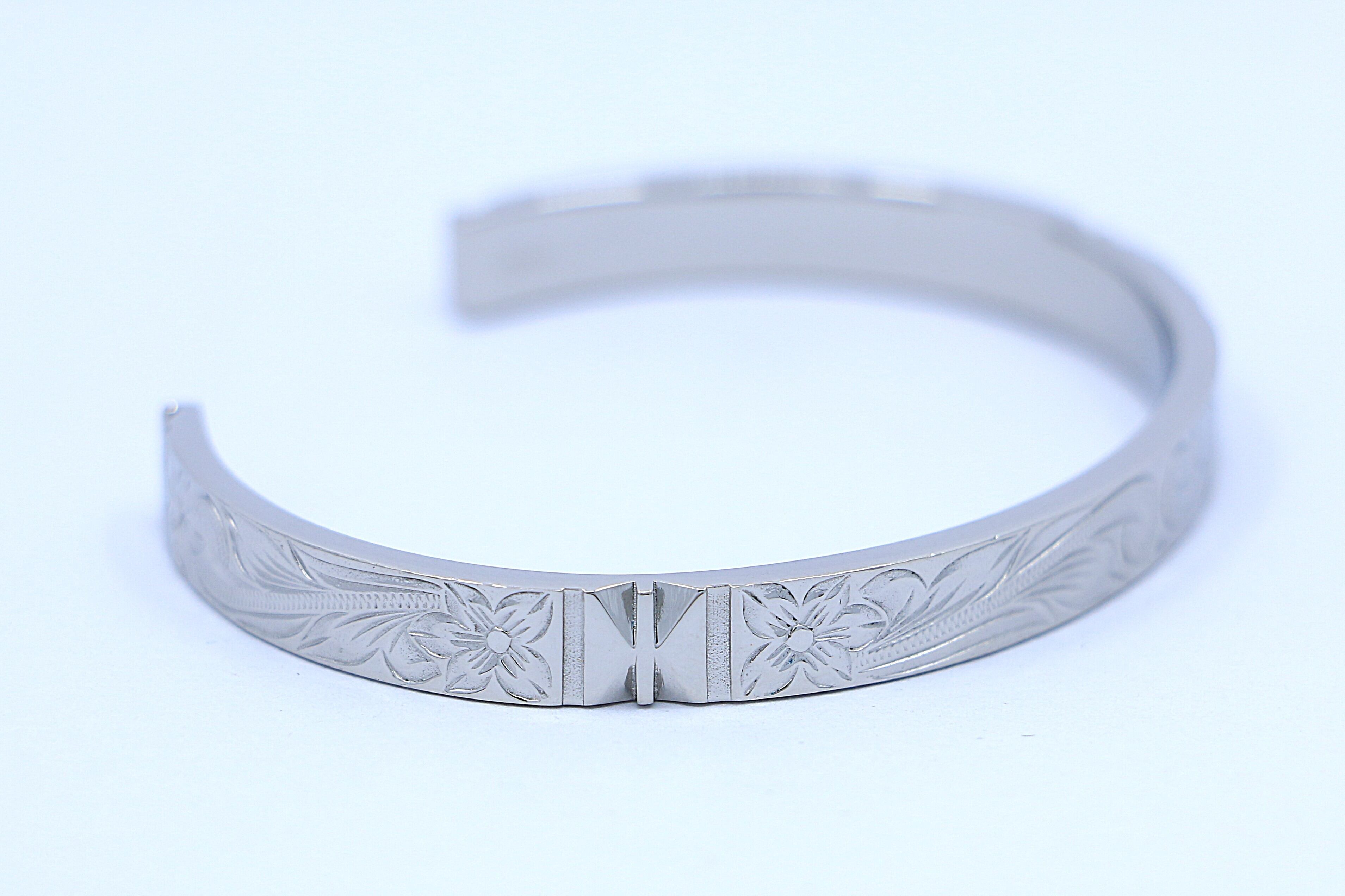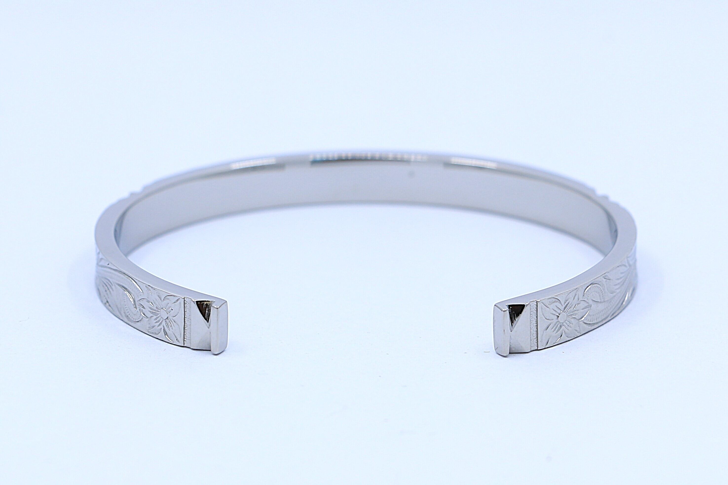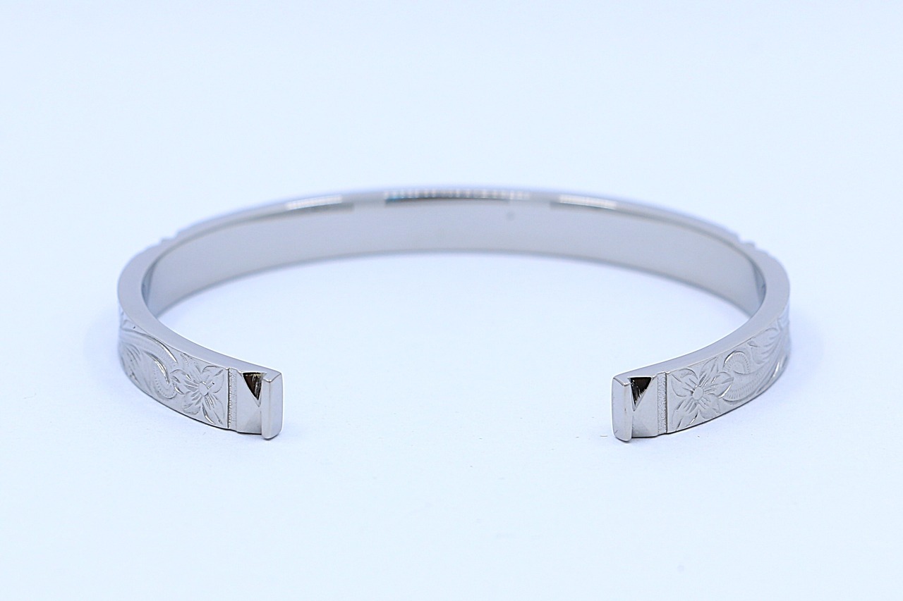 このバングルは、ハワイアンジュエリーを象徴する ヘリテイジ柄 を丁寧に刻み込んだ特別なアイテムです。