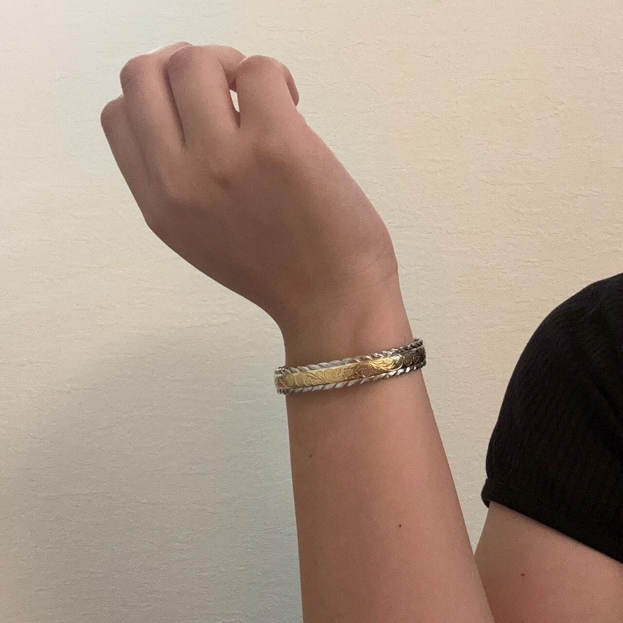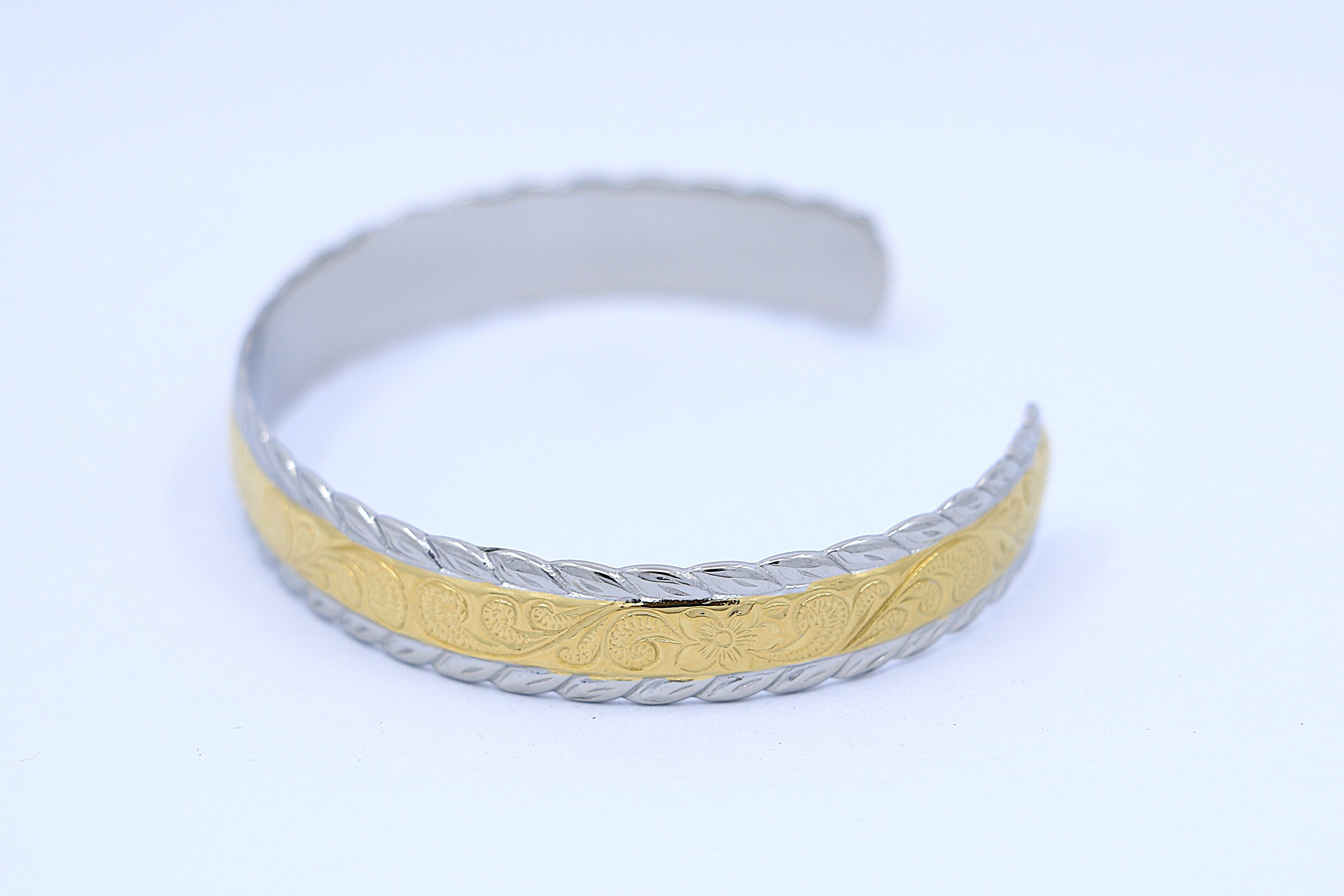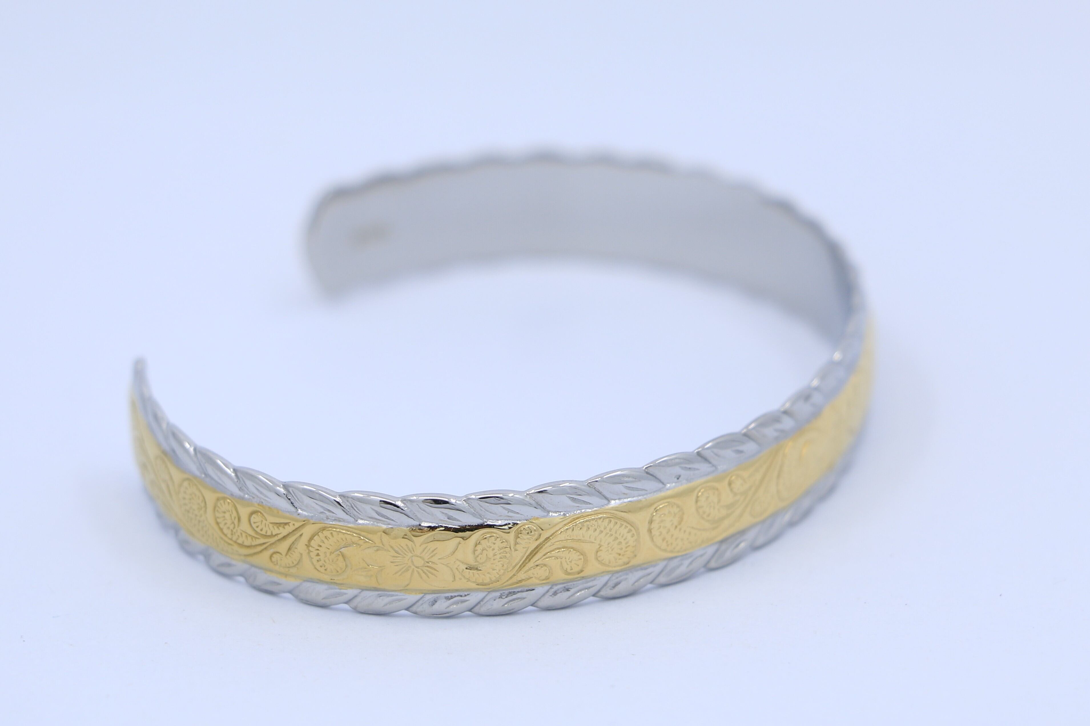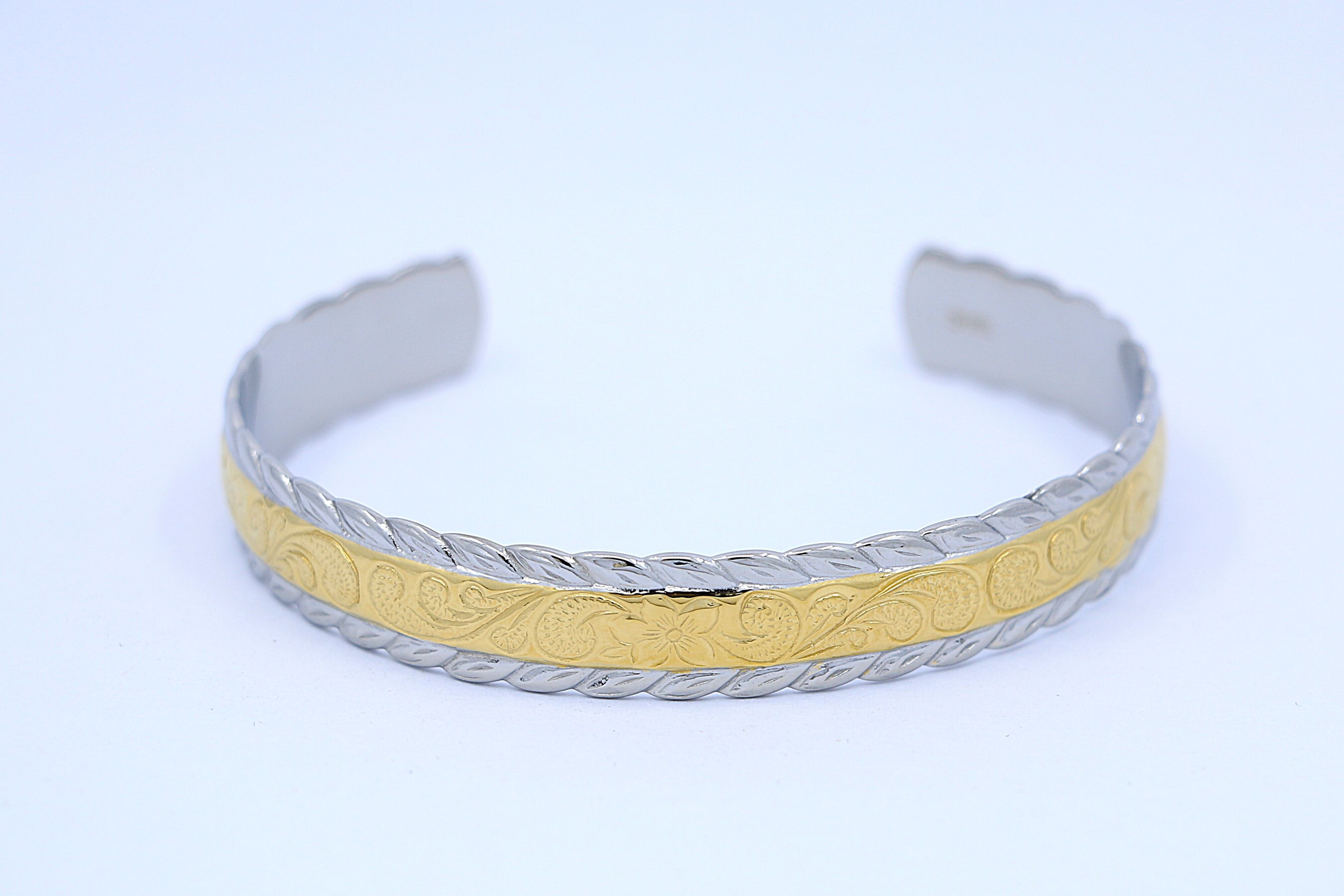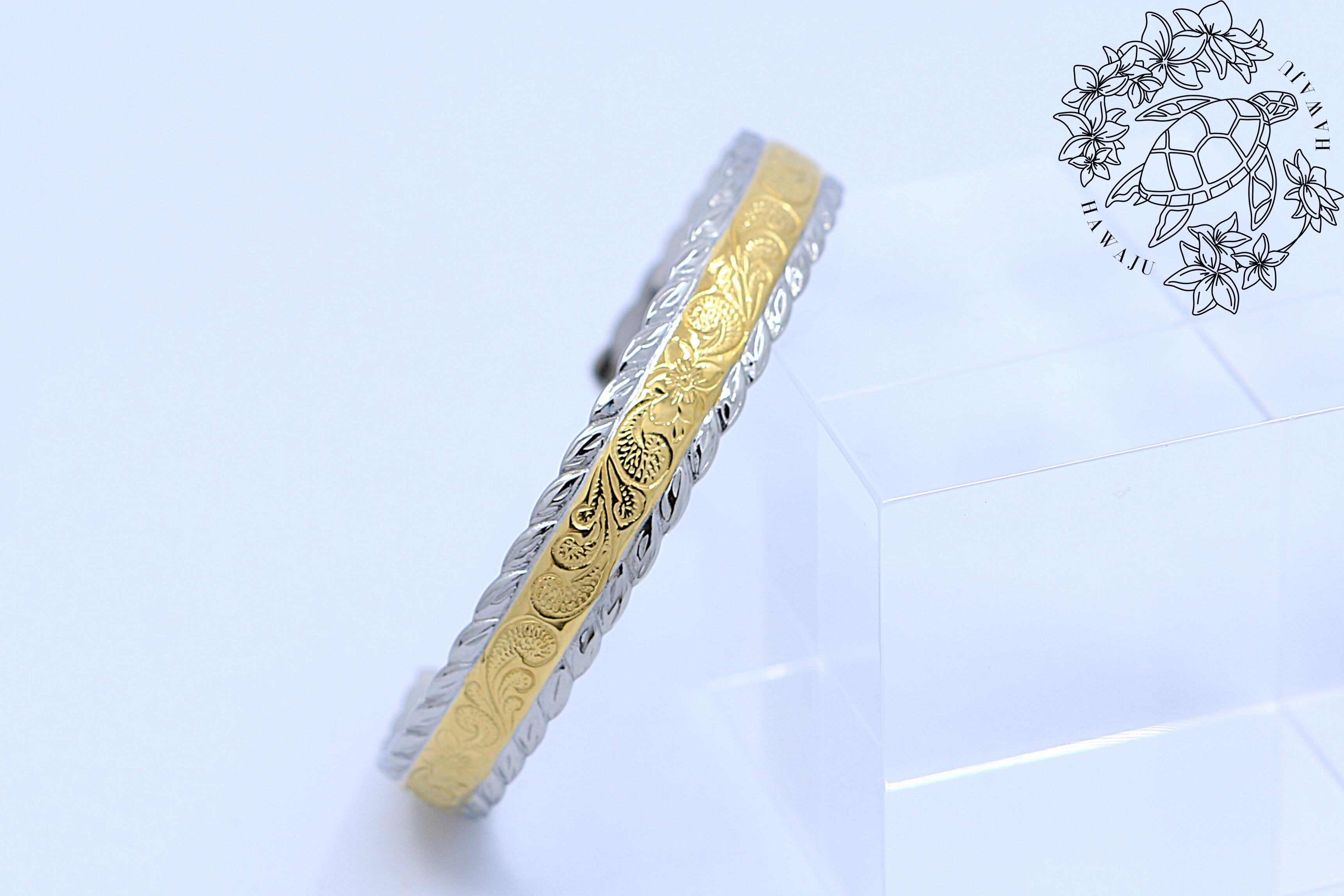 このバングルは、ハワイアンジュエリーの伝統的なスタイルを取り入れたブレスレットです。