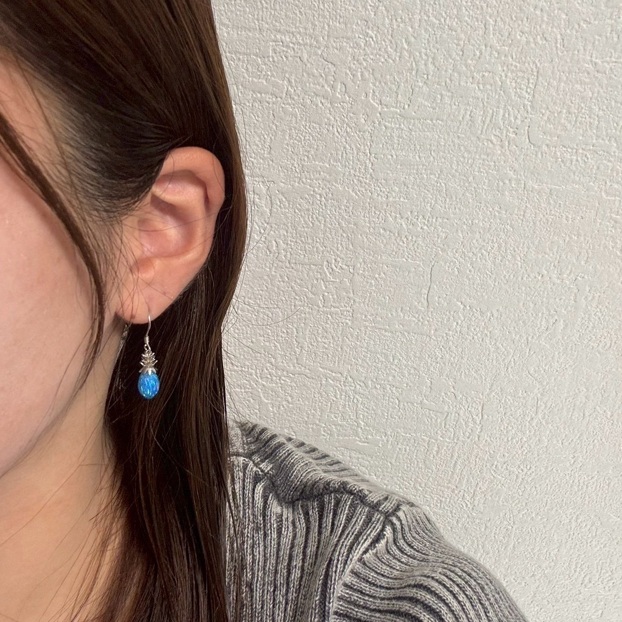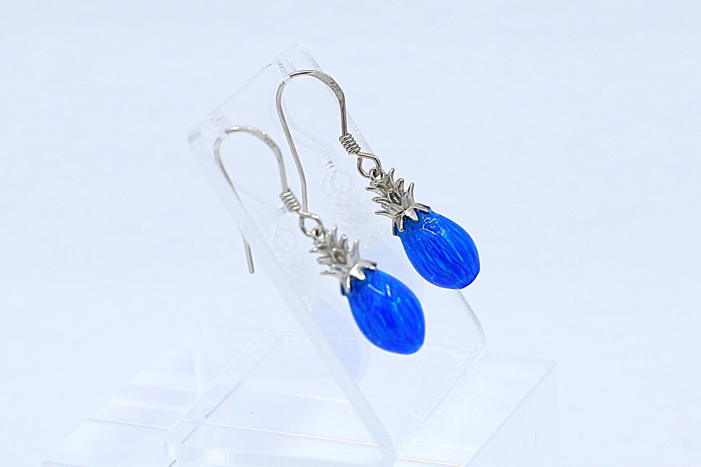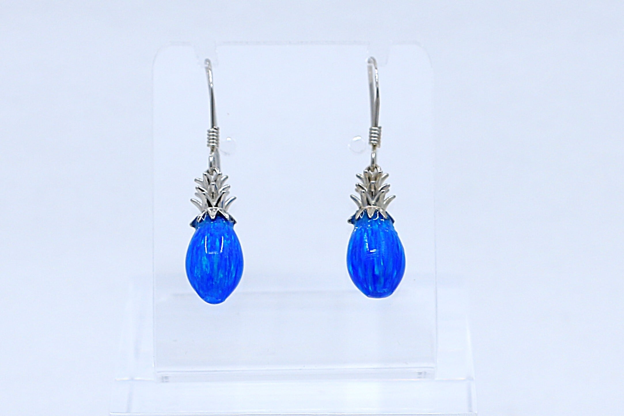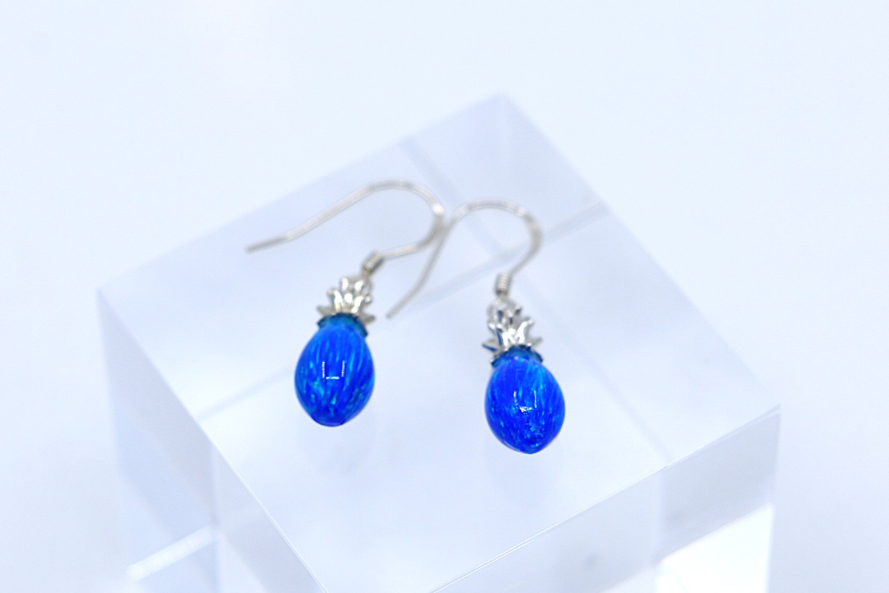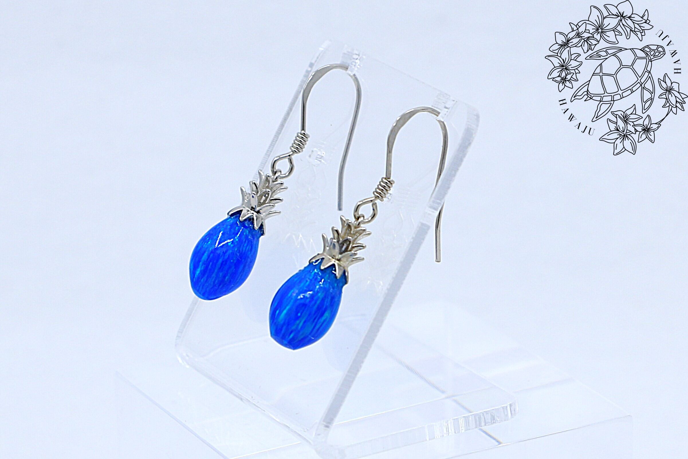 南国の陽光を閉じ込めたような、鮮やかなブルーオパールが輝くパイナップルモチーフのフックピアス。