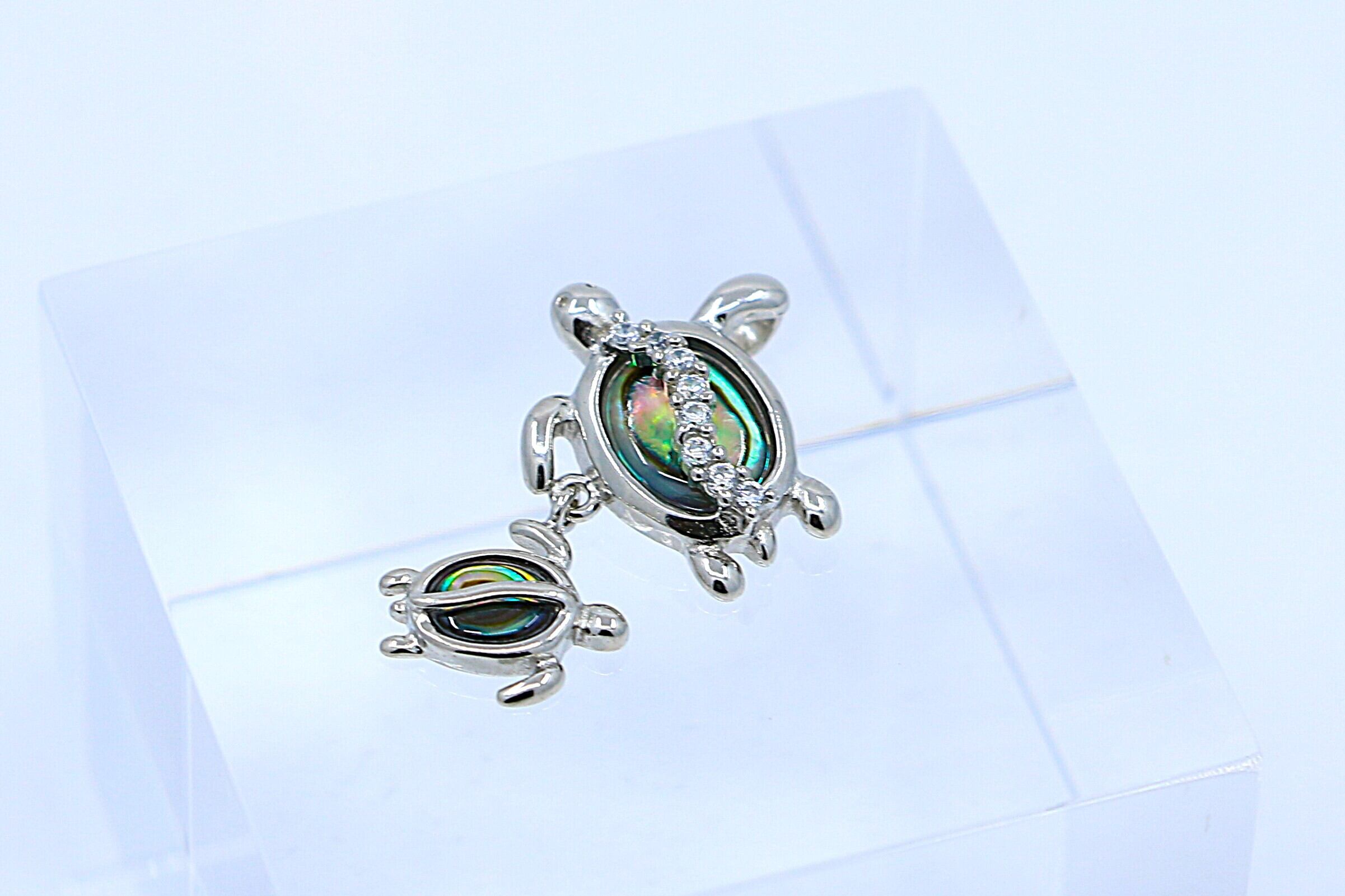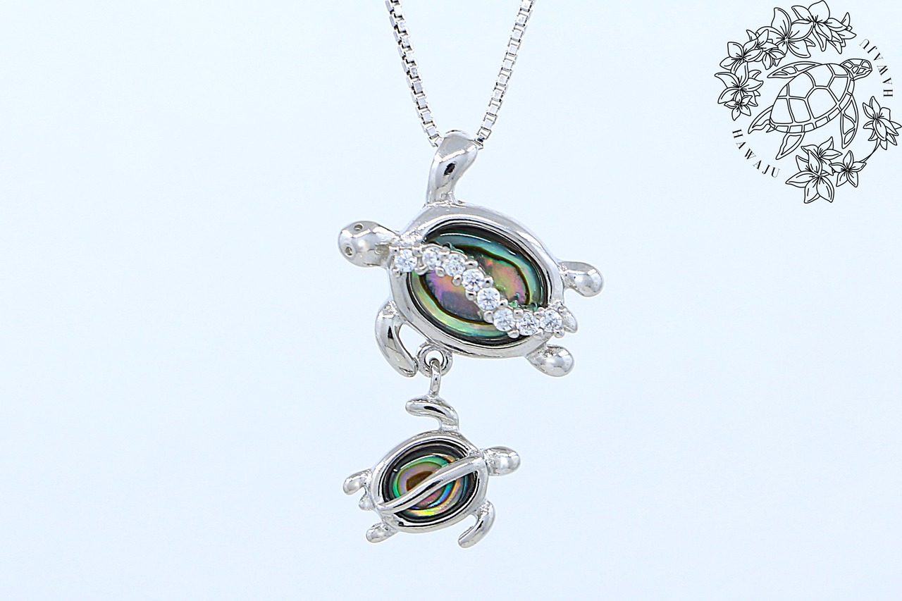 絆を感じる親子のホヌ(ウミガメ)デザインが心を癒す、愛と幸運のペンダントトップです。