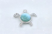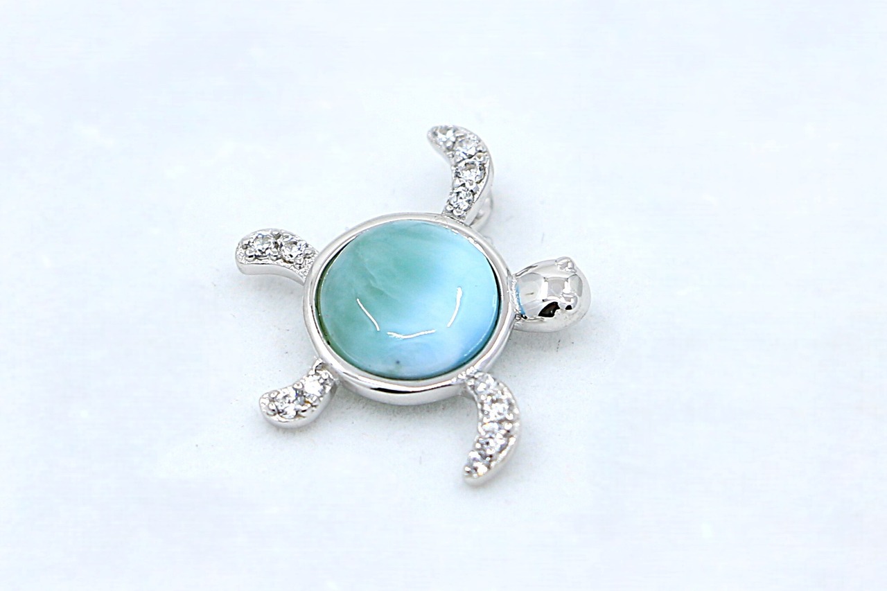 ホヌ(ウミガメ)デザイン ペンダントトップです。美しいラリマーとキュービックジルコニア、シルバーの組み合わせが、海と自然のエネルギーを感じさせる特別な一品です。