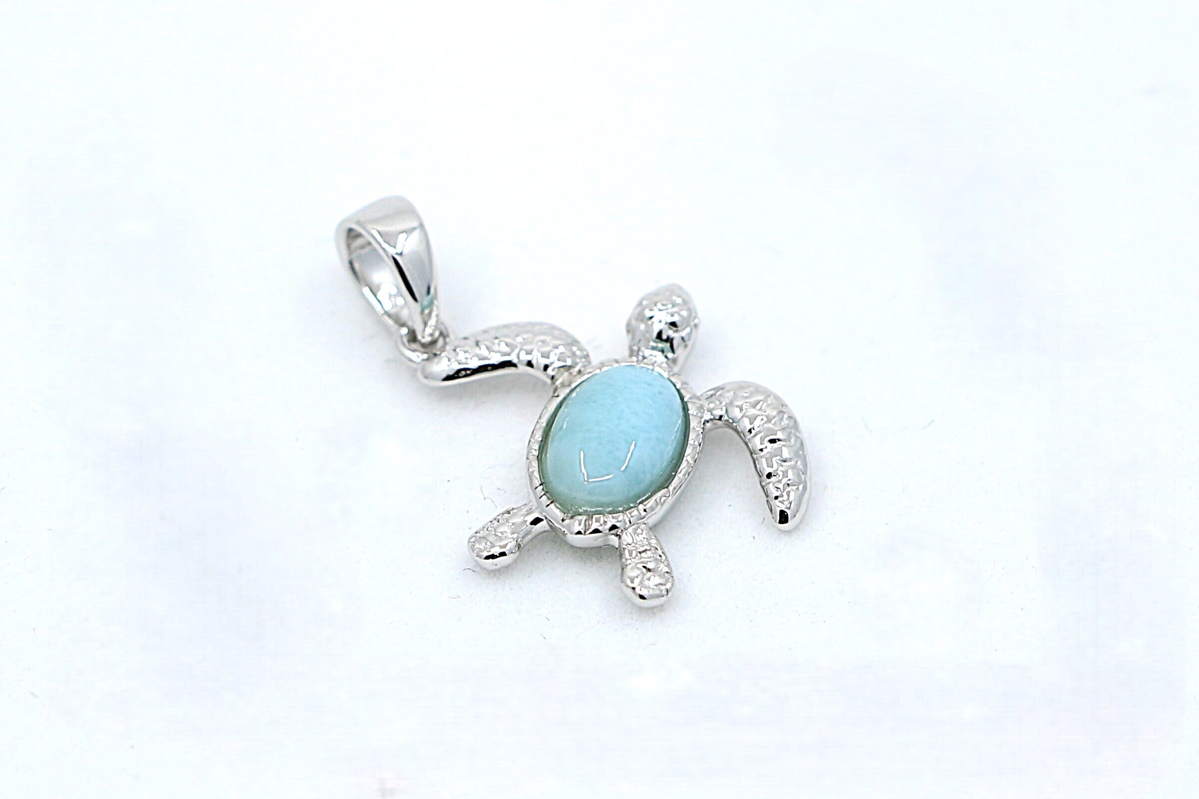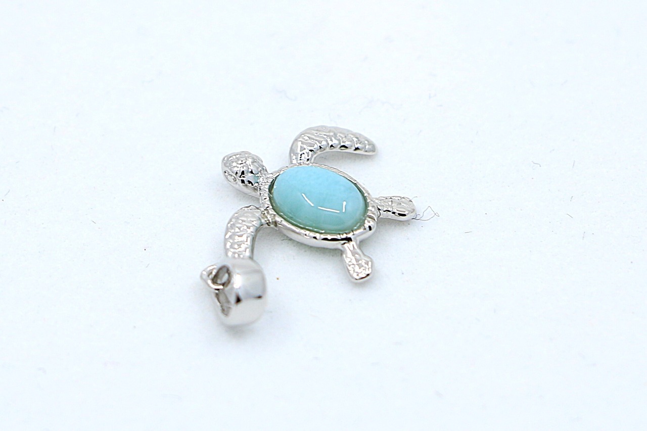 ホヌ(ウミガメ)デザイン ラリマーあしらいペンダントトップです。ホヌとラリマーが織りなす優美なデザインは、身につける人に穏やかでポジティブなエネルギーを届けます。